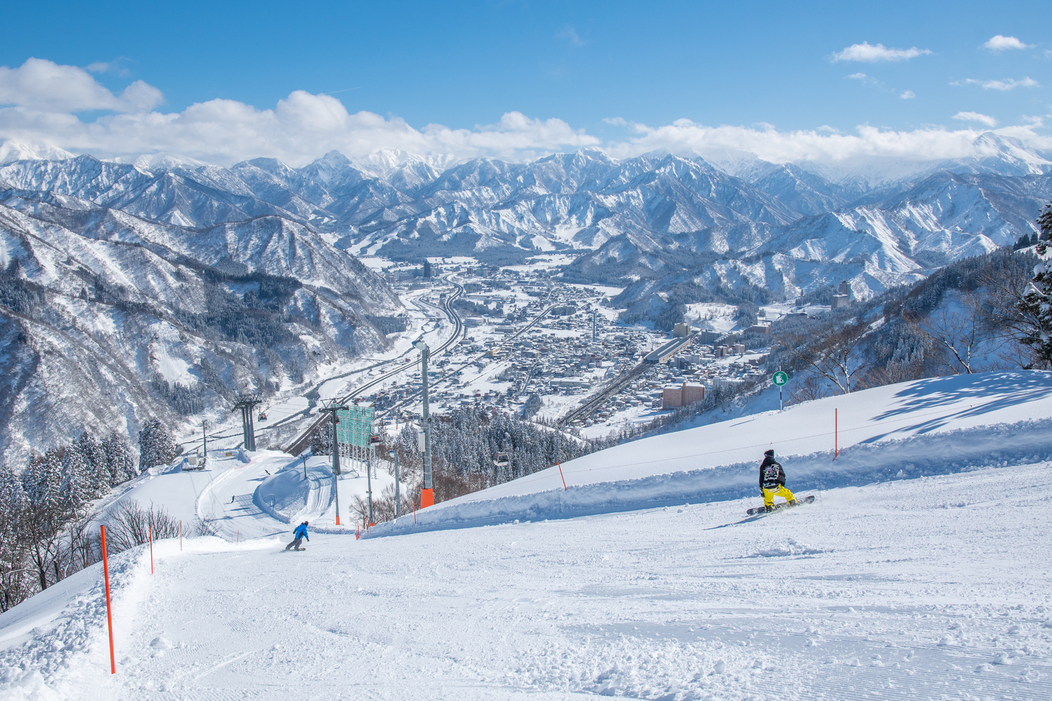 Visitors can enjoy 21 trails, with the maximum run length being a whopping 4,000-meter course. The maximum pitch in the valley is a challenging 32 degrees and facilities are in place for night skiing. The 5.5-km Dragondola, the longest gondola in Japan, also connects Naeba with the neighboring Kagura Ski Resort.