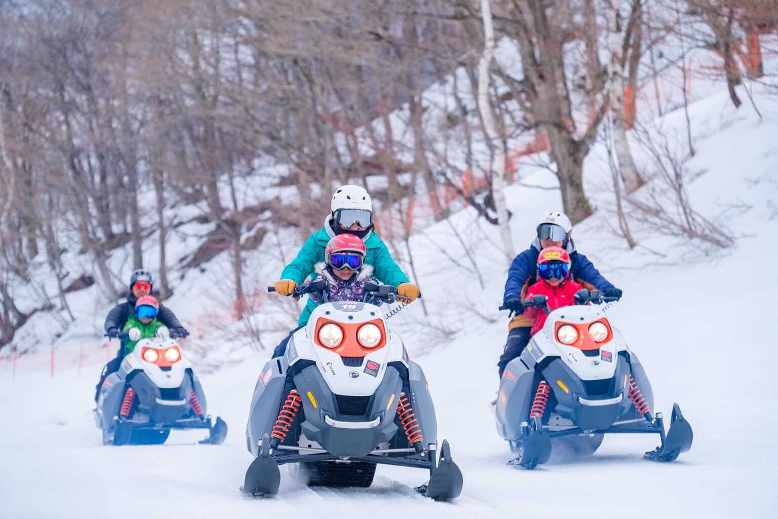 Less than two hours from Tokyo by Shinkansen, the 15 Gala Yuzawa Snow Resort courses and nine lifts crisscross the slopes of 1,181-meter Mount Takatsukura. Routes are available for all levels of skiing and snowboarding ability, while visitors are also able to explore the area in a snowmobile sleigh tour, go snowshoeing, sledding or snow tubing on dedicated courses.
