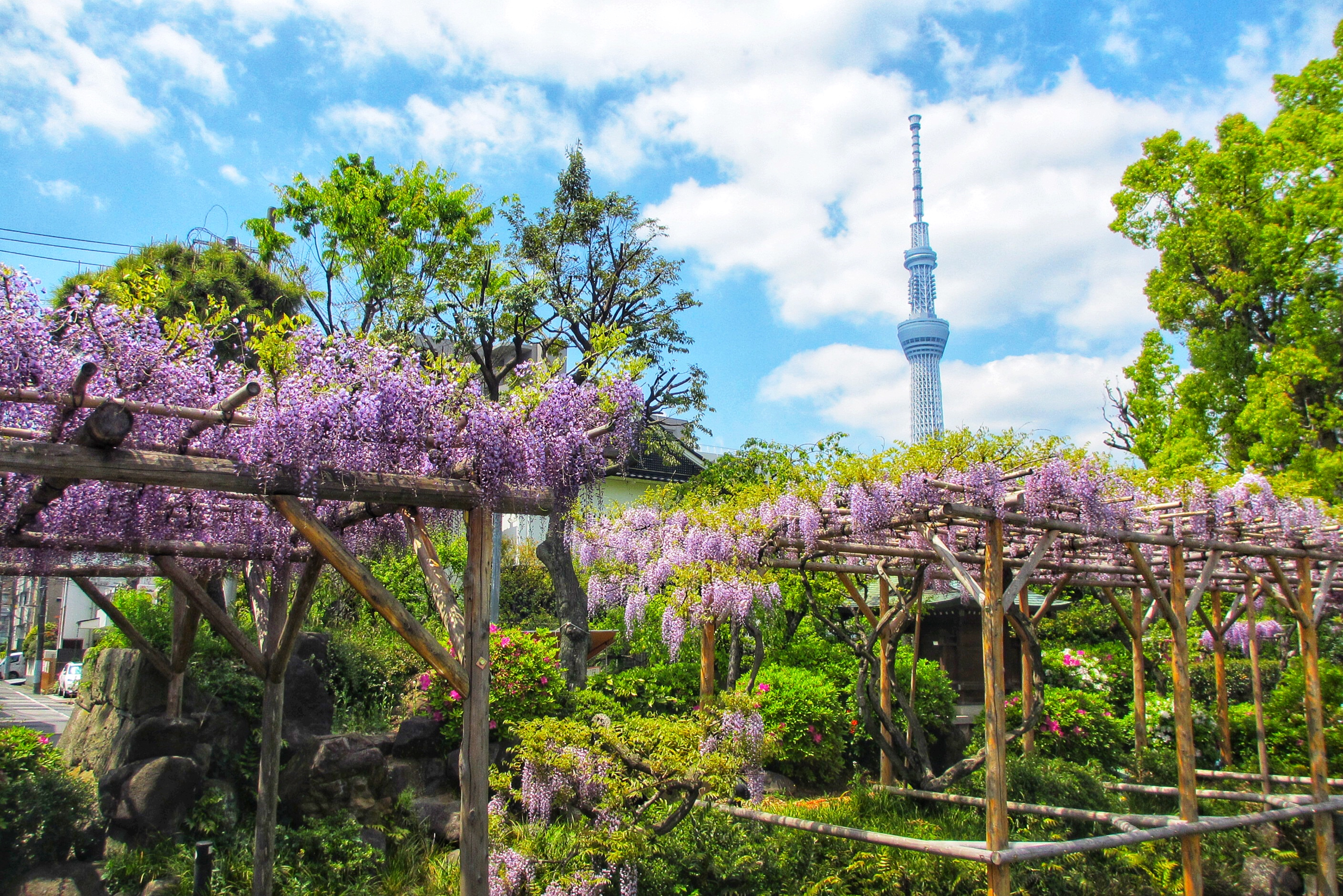 Special event: Kameido Tenjin Wisteria Festival, April 5–30 (illumination: sunset–9 p.m.)