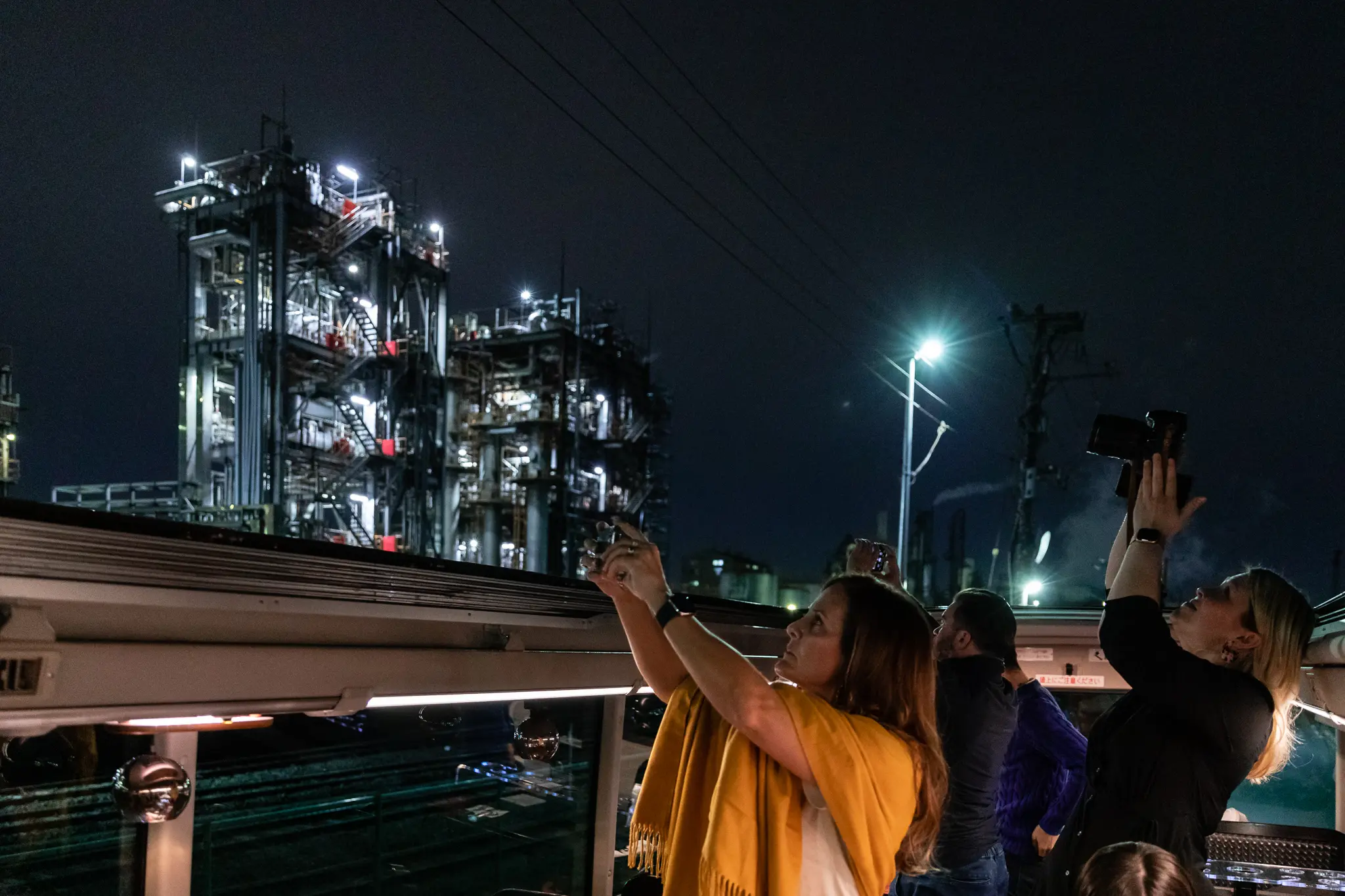 The tour continues as the bus weaves through narrow streets and under low bridges to three more of the best vantage points to see the city’s illuminated factory structures: Mizuecho, Chidoricho, and Tamagawa Sky Bridge. There are ten-minute stops in Chidoricho and Mizuecho, where you can get off the bus, allowing you to stretch your legs and capture the beauty of the lit-up factories.