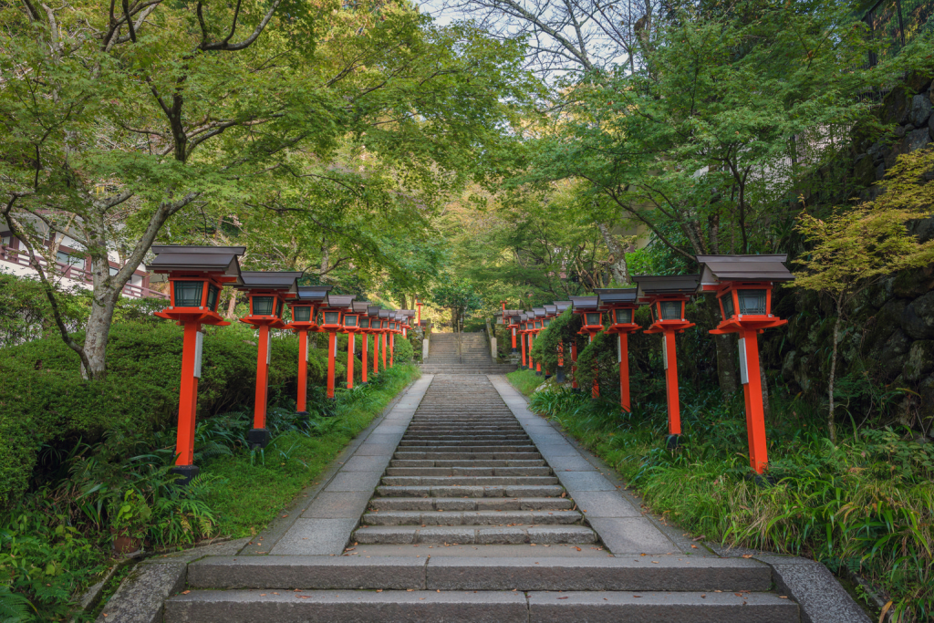 Not only does it have a giant Tengu greeting you at the foot of the mountain, but the scenic view is exceptional. Ditch the cable car and hike all the way to the top of Kurama—the whole hike takes about two hours. Mount Kurama is considered the birthplace of spiritual practice reiki, as well as the home of Sojobo, also known as the King of Tengu. To get there, get off at Kurama station on the Eizan Electric Railway, and make sure you take a stroll in the historic town of Kibune post-hike.