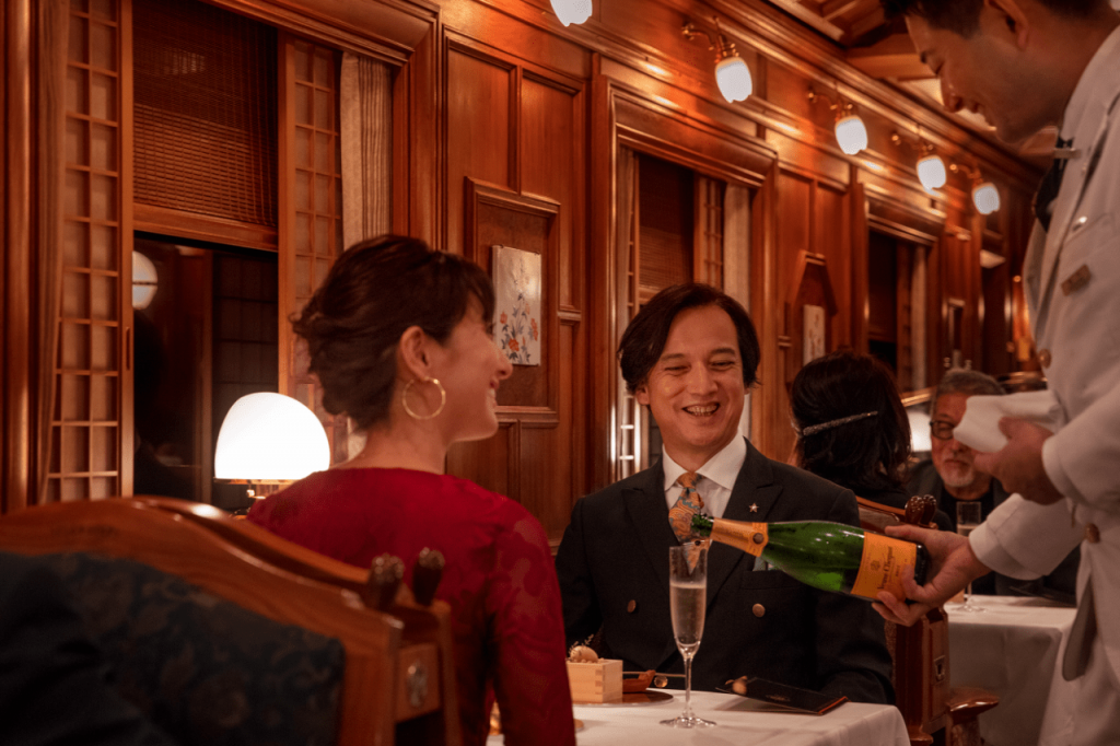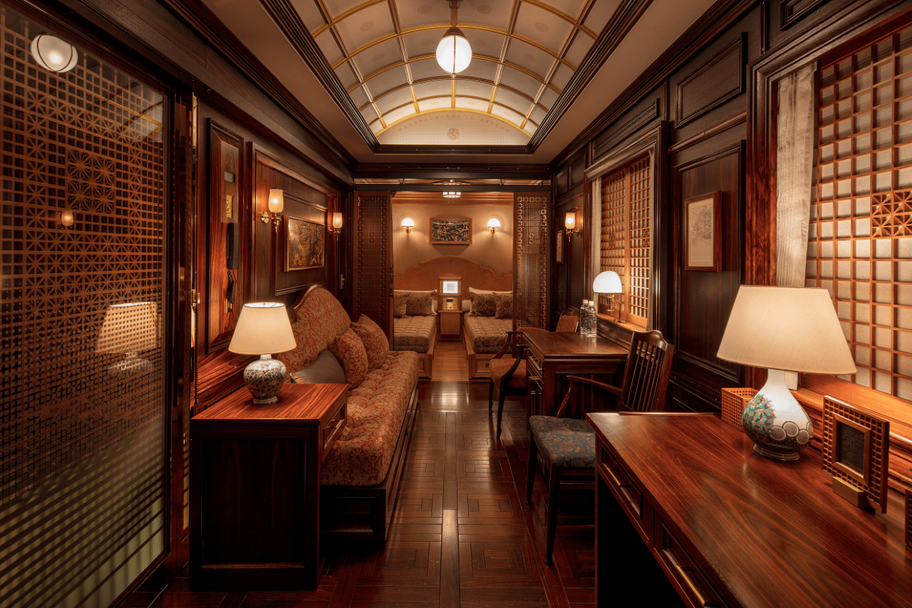Guests can expect first-class service even before they set foot on the Seven Stars in Kyushu, which wraps luxurious accommodation, exquisite cuisine and immersive experiences into one convenient package. Passenger capacity has recently been reduced to further ensure guests enjoy exclusive and personalized service. Outside of the suites, guests can enjoy shared spaces crafted by acclaimed artisans in the on-board salon, tea room and shop. At The Blue Moon, a sumptuous bar lounge car with live piano performances and a broad selection of tipples, guests can while away the evening hours as they gaze out at the beautiful Kyushu landscape passing by.