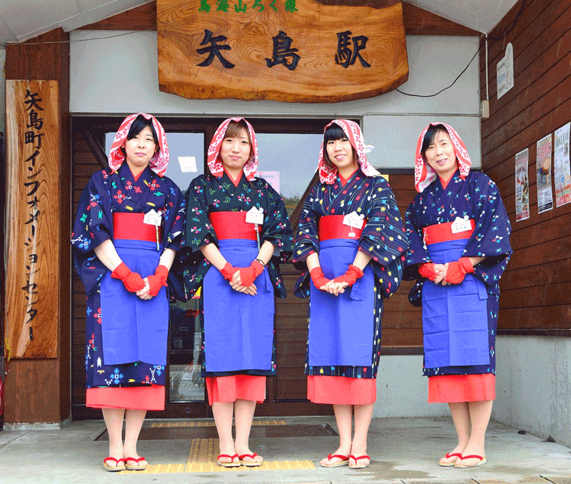 For those of us who are used to packed, multi-car train trips, riding a single car through the scenic landscapes around Daisen feels like a step back in time, a feeling that is only amplified by the presence of these traditionally dressed women, garbed in history.