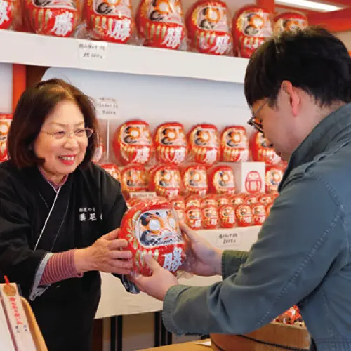 The temple also features daruma mikuji (fortune slips). If you’re seeking guidance about a particular situation or aspect of your life, select a mini daruma doll with a mikuji sticking out of it. These small dolls can be placed anywhere on the temple grounds once you’ve read your fortune, or they can be taken home as souvenirs. The temple gift shop sells many other quirky daruma-themed gifts, snacks and more.
