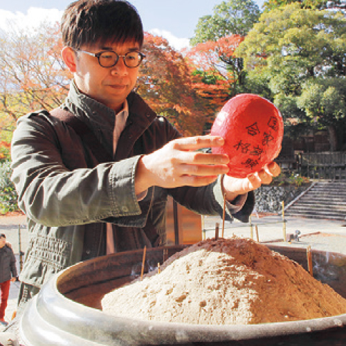 After taking a few incense sticks and praying, hold your daruma doll over the incense smoke, and then fill in one of its eyes with a marker. Once your wish is granted, fill in the other eye and return to the temple to place your daruma doll on the special dedication shelf.