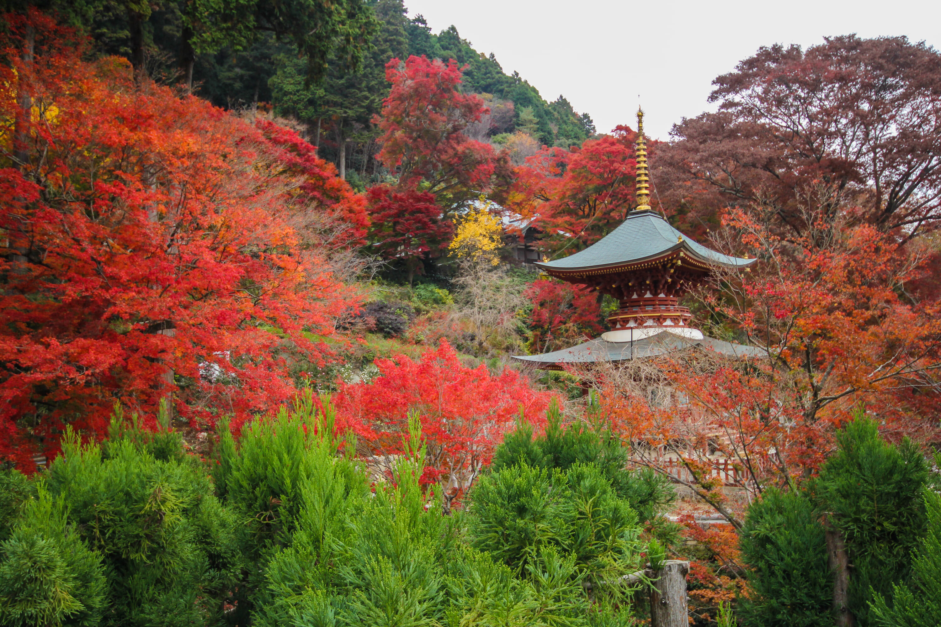 Further up the mountain from Minoh Waterfall is Katsuo-ji Temple, another treasured local spot for foliage viewing alongside its main distinguishing feature: hundreds of daruma dolls. This Buddhist temple sits on over 260,000 square meters of land and is famous for granting kachi-un — winner’s luck — to patrons about to face an important test, job interview or other challenge.