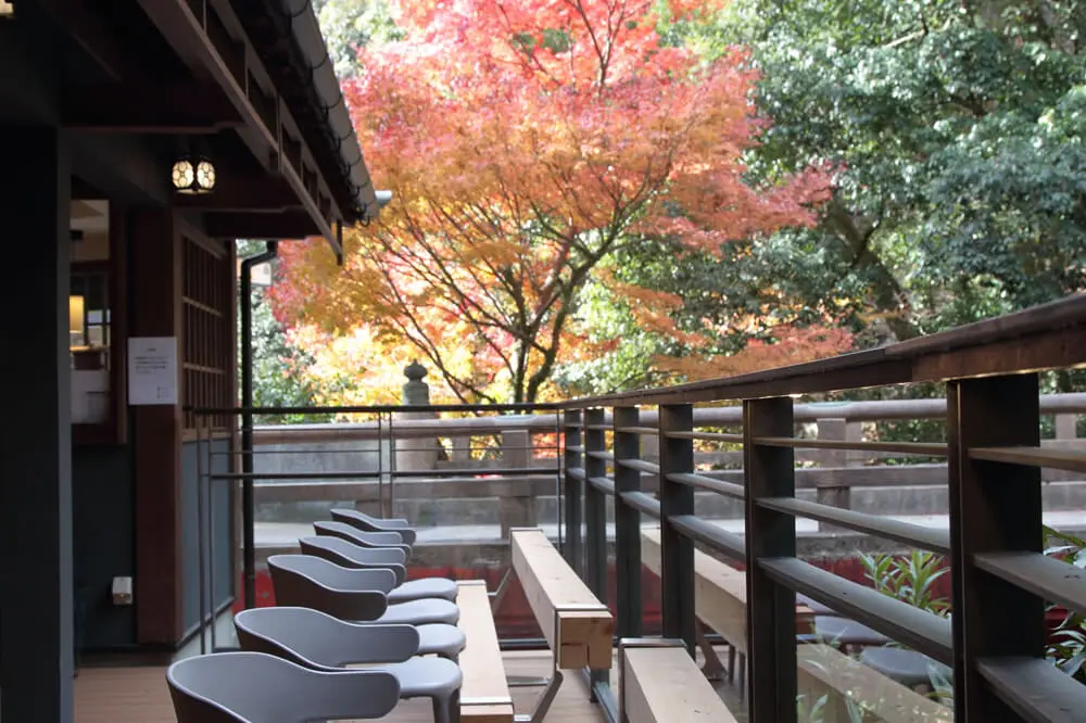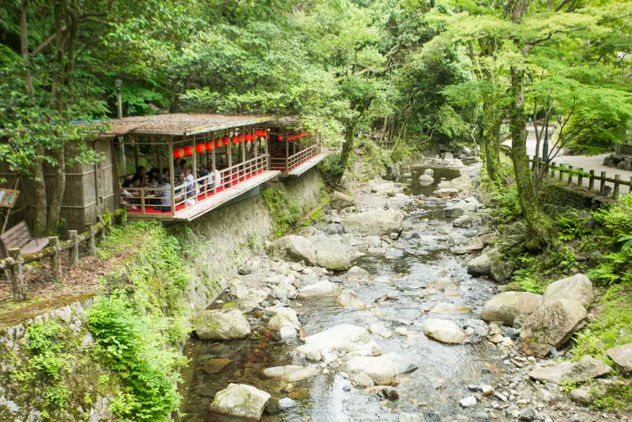 Kawadoko Isoyoshi is a riverside kaiseki restaurant with a long history dating back to the Meiji era. Only open between late April and late October/early November due to its outdoor-only seating, the restaurant gives guests the chance to savor elegant kaiseki-style makunouchi bento delicacies, such as sashimi, pickles, tempura and salt-grilled ayu sweetfish, while enjoying the crisp autumn air and the tranquil sounds of the Minoh River. Reservations are required at least a day in advance, as seating is limited. Business hours depend on the month, with autumn hours running from noon to 4 p.m.