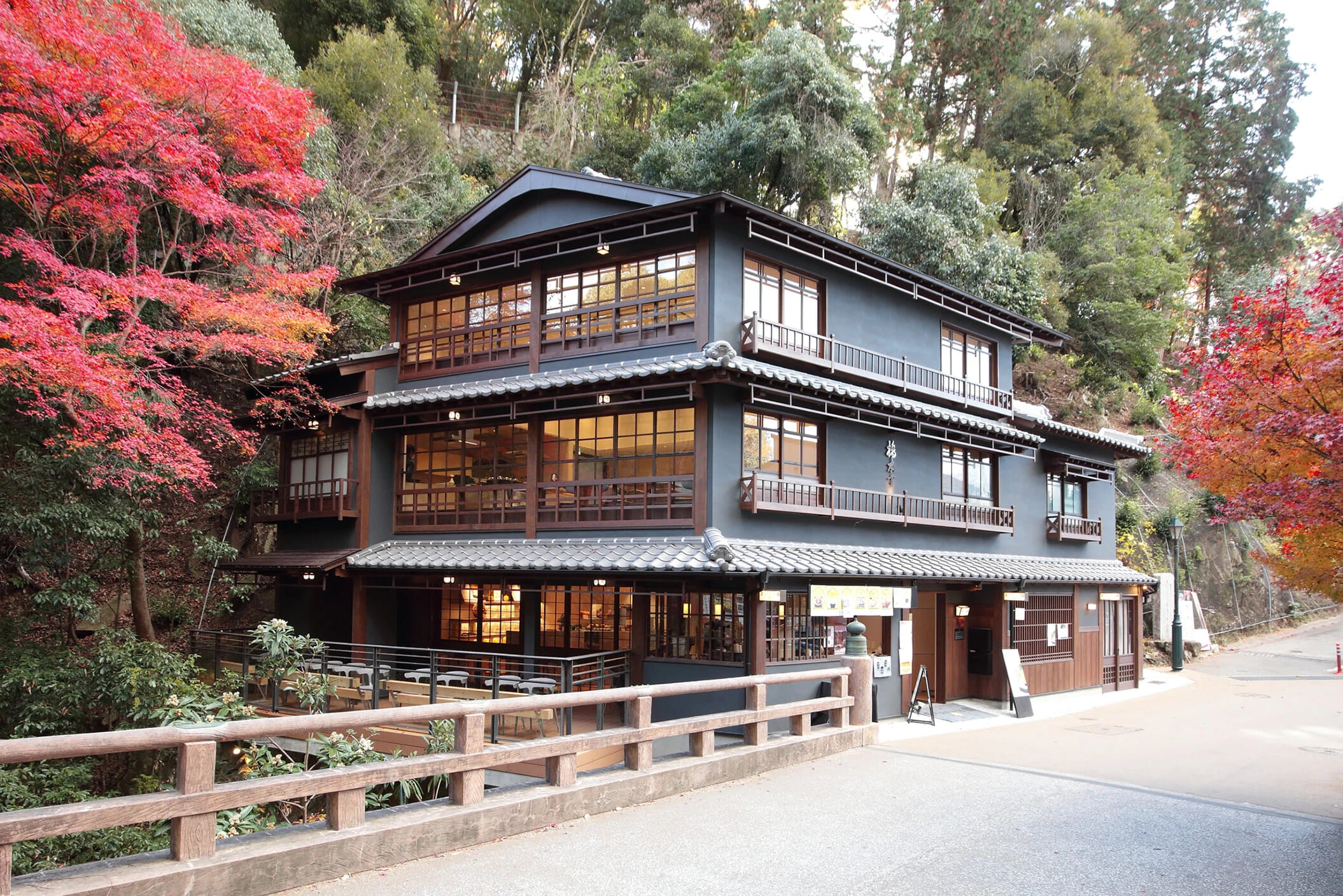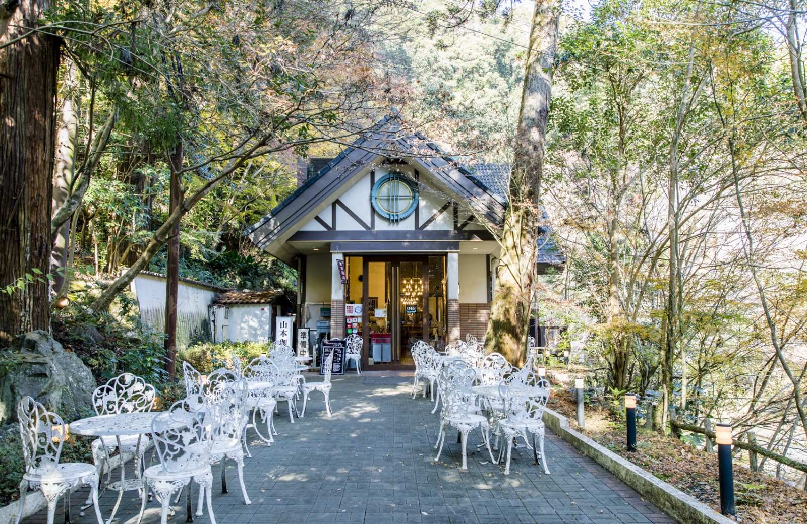 There’s no shortage of charming cafes and restaurants in the station and park area, especially along the path to the waterfall. An option brimming with atmosphere right by the river is Yuzuya, a cafe and restaurant run by food activist Hiroaki Ukita. The building, originally a Meiji-era ryokan, was restored in 2020. The first-floor cafe, with a terrace seating option, serves casual meals, cakes, croffles with homemade yuzu butter and a variety of beverages.