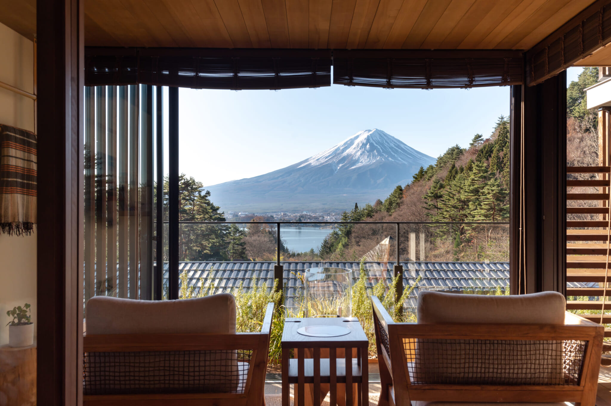 The restaurant tables, arranged in terraced rows, recreate the layout of an amphitheater, promising a private setting for dinner and breakfast. Breakfast is similarly a celebration of freshness and seasonality, with a variety of dishes arranged in a way that mirrors the volcanic lakes surrounding Mount Fuji. The meal is tied together with a local spring water jelly and fresh rice cooked on a traditional Japanese wood-burning stove.