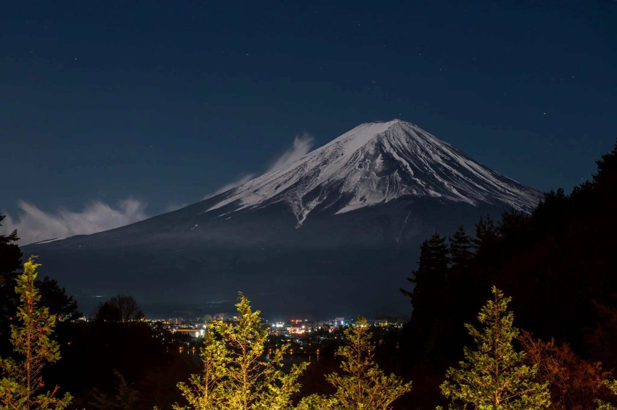 In Tokyo, provided you go up high on a clear day, you can glimpse Mount Fuji peeking from the horizon. But just about two hours from Tokyo, near Lake Kawaguchiko, Japan’s tallest mountain takes up a lot more sky, is closer than ever, and seems larger than life.