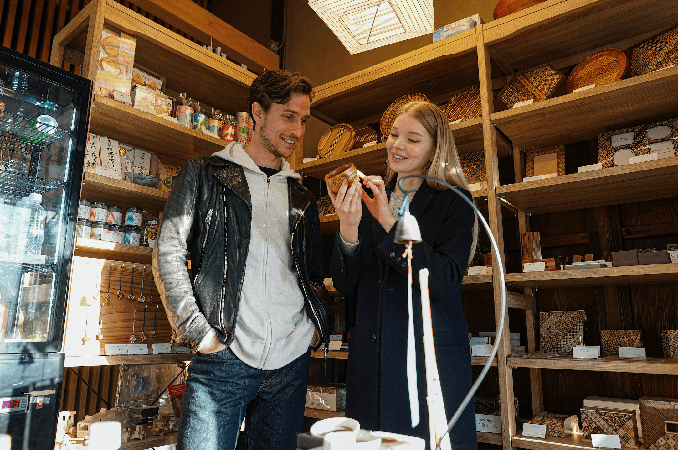 Opening in December 2020, Minaka Odawara is a sprawling development located at the east exit of Odawara Station. Featuring a delightful “shopping street” with Odawara Castle-inspired architecture, the center boasts a food court, souvenir stores, a footbath and a hotel – which is where you’ll be bedding down for the night. After dropping off your bicycles, check in to your well-appointed accommodation and enjoy a relaxed, cozy evening away from the crowds.