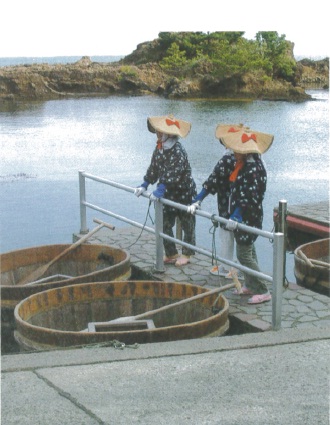 From the tourist industry’s point-of-view, Ogi Hanto’s main attraction is the taraibune, round or slightly oval tub boats, which look like a barrel cut in half and are propelled by sculling with an ingenious paddle by colorfully clad fisherwomen around the harbor at Ogi Port. But within walking distance of Shukunegi Shinden is Yajima Kyojima, a tiny, picturesque harbor with a trio of taraibune women ready to take you out on a much more relaxed and photogenic glide (¥500/ ten minutes).