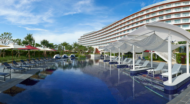 Get ready to make a splash. The Hilton Okinawa Chatan Resort has a wide variety of pools to appeal to all tastes and ages, whether you choose to bask in the luxurious lagoon pool, gaze at the picturesque cascade pool with its built-in waterfall, or take a break in the 17-meter long heated pool. For the young—or young at heart—in your group, there’s also a kids’ pool complete with waterslides. Or you can just recline in one of the poolside lounge chairs.