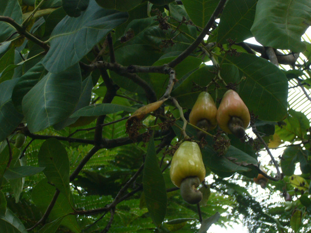 I was treated to an interesting tour of the spice and herb garden with a horticulturist at the beautiful Leela Kempinski hotel in Southern Goa. Many of the plants were labeled to identify their medicinal uses, and I was thrilled to see this big cashew tree. No wonder cashews are expensive—a single nut grows from the base of a single cashew fruit (also used in cooking in India).