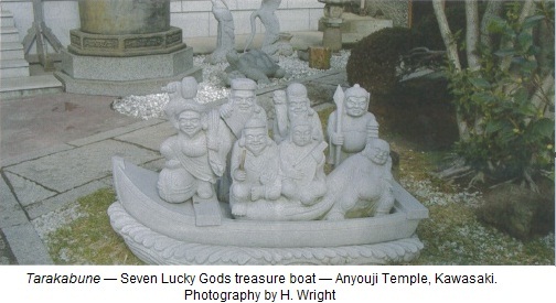 It’s not surprising that the most orthodox time to make the Seven Lucky Gods pilgrimage or shichfukujin meguri is the first seven days of the New Year. In practical terms this makes things easier, since the temples and shrines keep their box offices open and have plenty of shikishi and other lucky items for sale.