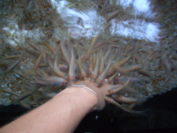 In the name of wellness, the ayurvedic spa has a spa experience that involves a bath filled with little fish that bite at you called Roffaa Groo. These little white fish come from Southeast Asia and thankfully have no teeth in their bite. Putting your feet into the bath knowing these fish will quickly swarm and start nibbling is a bit trippy. The fish clean away dead skin and keep you and their environment clean. Villagers in India enjoy this experience in their local ponds.
