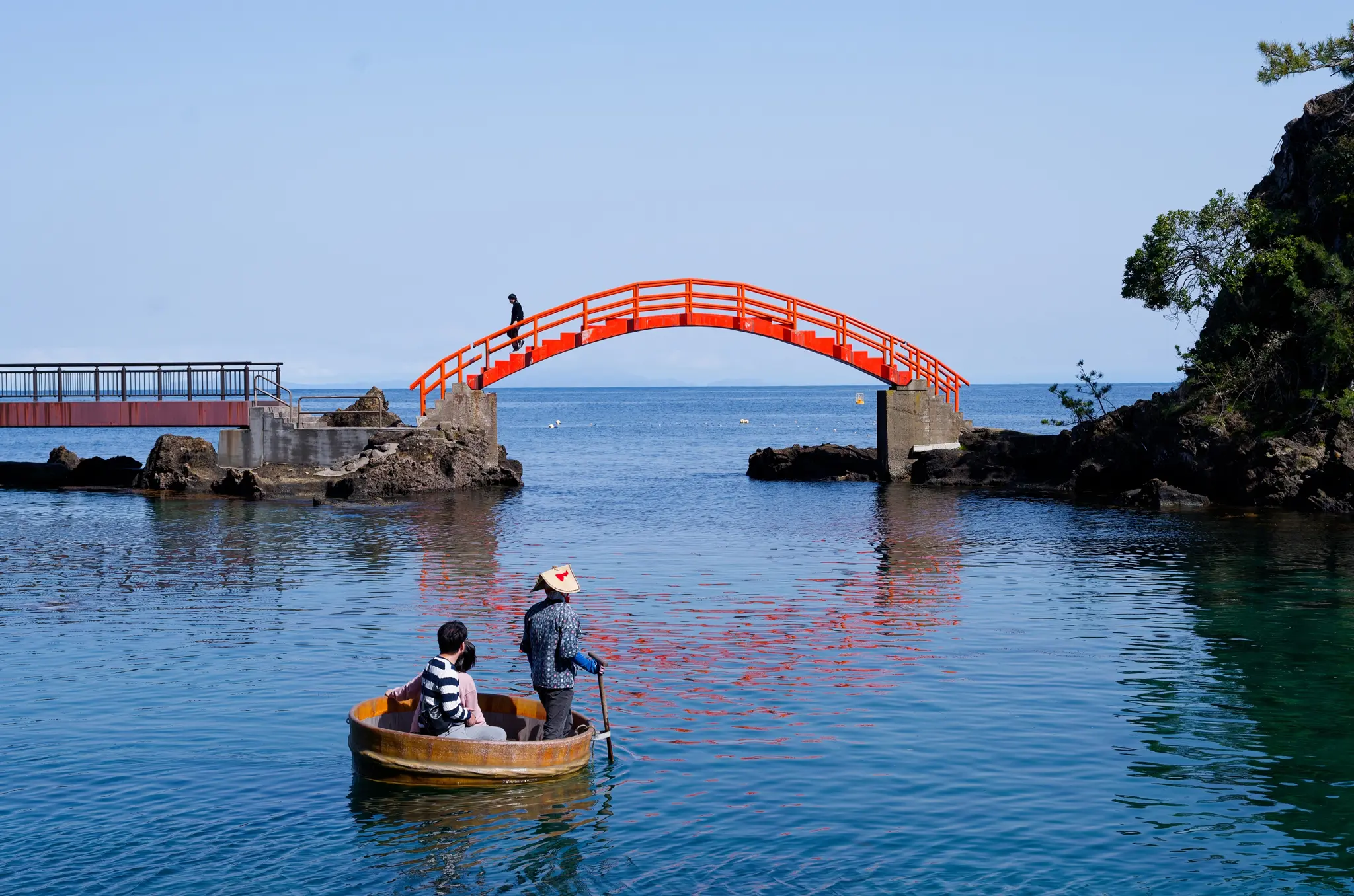 Sado Island is renowned for its crystal-clear waters and dramatic shorelines. These are best viewed from a tarai-bune — a kind of round, hand-hewn, tub-shaped fishing boat that’s become one of the island’s most famous sights. These vessels have worked the coves since the late 19th century, initially designed for harvesting turban shells and abalone where regular boats couldn’t maneuver. Today, you can ride one from Ogi Port without advance booking. Alternatively, at the Yajima Experience Exchange Center, you can board a tarai-bune with a partially clear bottom and watch kelp sway and fish dart beneath your feet.