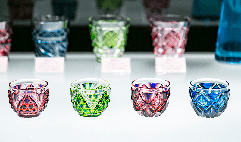 Visitors to Hotel Shiroyama would be remiss if they did not find time to visit the hotel’s cut glass boutique. There, a fine selection of the region’s pottery and glassware can be enjoyed – and purchased. Production of Satsuma Kiriko (Satsuma cut glass) – such as crystal glasswares and glass sheets – in the area began in the 19th century, thanks to the patronage of Shimazu Narioki, a feudal lord with a love of fine glassware. He invited glassmakers from Edo (present day Tokyo) to practice their work around Kagoshima. These artisans had learned many of their techniques from foreign sources, thanks to the influx of Western learning through trade based around the port of Nagasaki. After a few generations of refinement, the characteristic qualities of Satsuma Kiriko had emerged: extraordinarily detailed facets cut into surfaces with the precision of a jeweler and bold color patterns created from the use of overlaid glass of varying hues.