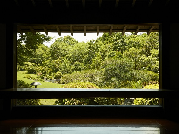 Circling around the gate, we came to a slow stop outside the hotel’s main building, called Tsubakidono. The resort, which celebrates its 40th anniversary this year, was created by repurposing seven 200-year-old country homes from the Hokuriku region, with Tsubakidono being the largest. When you walk through the heavy wooden doors, the space opens up dramatically. High ceilings feature huge pine beams, which are assembled exactly as they used to be in the original home – only wedges (no nails) are used for fixing the beams. Directly ahead, our eyes were automatically drawn to a large rectangular window which invites in the verdant green of the perfectly manicured garden (look out for the grass-cutting automower, fondly nicknamed Shibakari-kun).