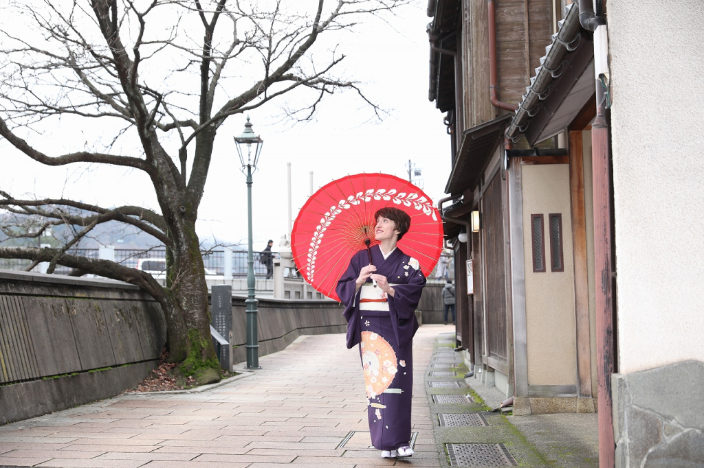 During my visit, Ms. Koshida personally assisted me in choosing a gorgeous purple Kaga Yuzen kimono and coordinating accessories, and then I had the opportunity to spend the morning with Kokoyui’s photographers Keiichi Shinmura and Mitsuhito Nakagawa on location as I visited the D.T. Suzuki Museum and the Kazuemachi Tea District.