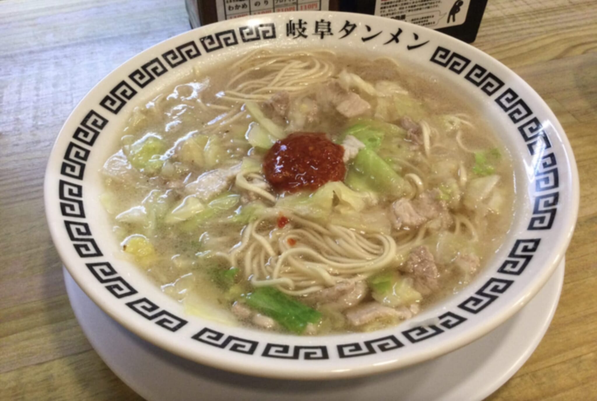 The popularity of Gifu Tanmen, originally a ramen shop in Inazawa, Aichi Prefecture, took off after it opened this location in Gifu city. It became so well loved that its noodles came to be known as “Gifu Tanmen.” The shop’s salt-based soup, packed with the flavors of pork, Chinese cabbage and garlic, is the star of the show, though patrons also praise the texture of Gifu Tanmen’s noodles. The restaurant, which is now part of a family of 34 shops, including sister shops, has even had its tanmen featured in TV programs.