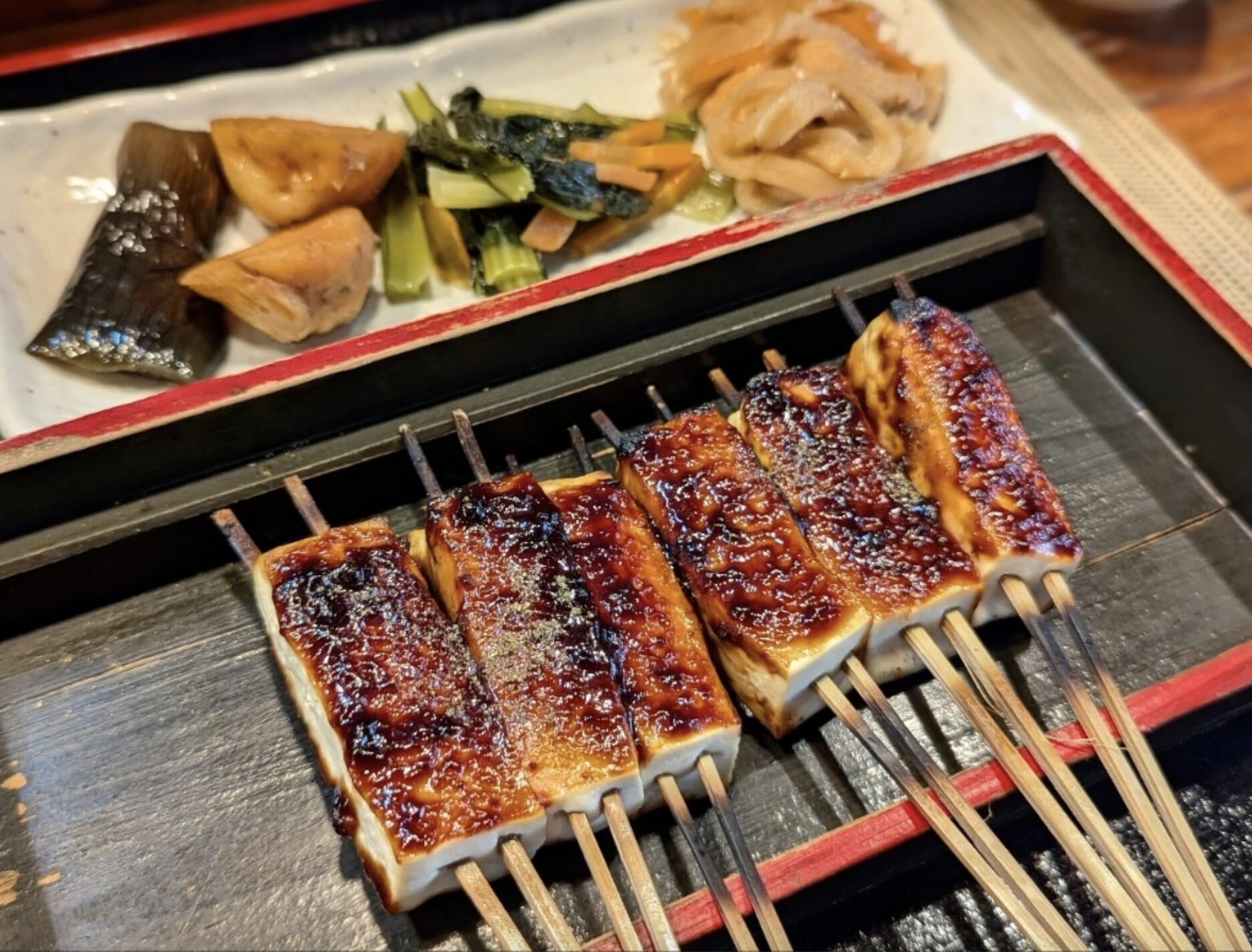 Established in 1902, Murase is known for kinome dengaku, a dish made by spreading kinome miso on skewered tofu and roasting the skewers over a fire. This Gifu dish is traditionally topped with kinome — the young leaves of the Japanese pepper — but now it tends to be sprinkled with Japanese pepper powder instead.
