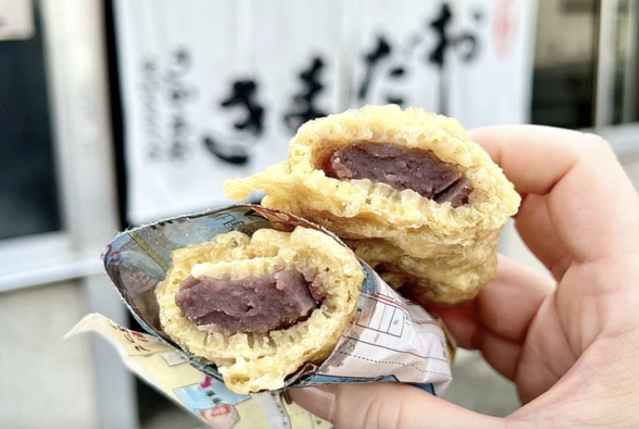 Odamaki Sakaeya serves odamaki, an under-the-radar Gifu soul food consisting of bean paste wrapped in a thin wheat flour shell. The bean paste isn’t too sweet, making it a great option even for those who don’t like desserts. Odamaki Sakaeya is truly a specialty shop, with only two items on the menu: regular odamaki (¥75) and a fried tempura odamaki (¥85).