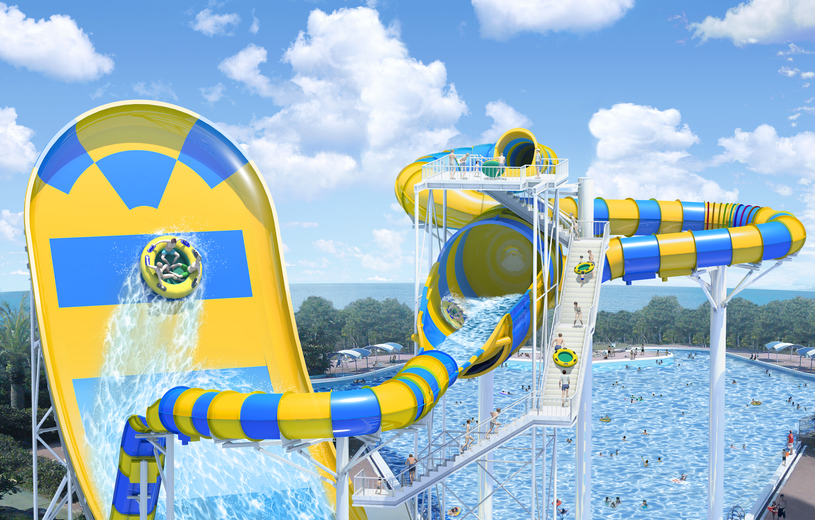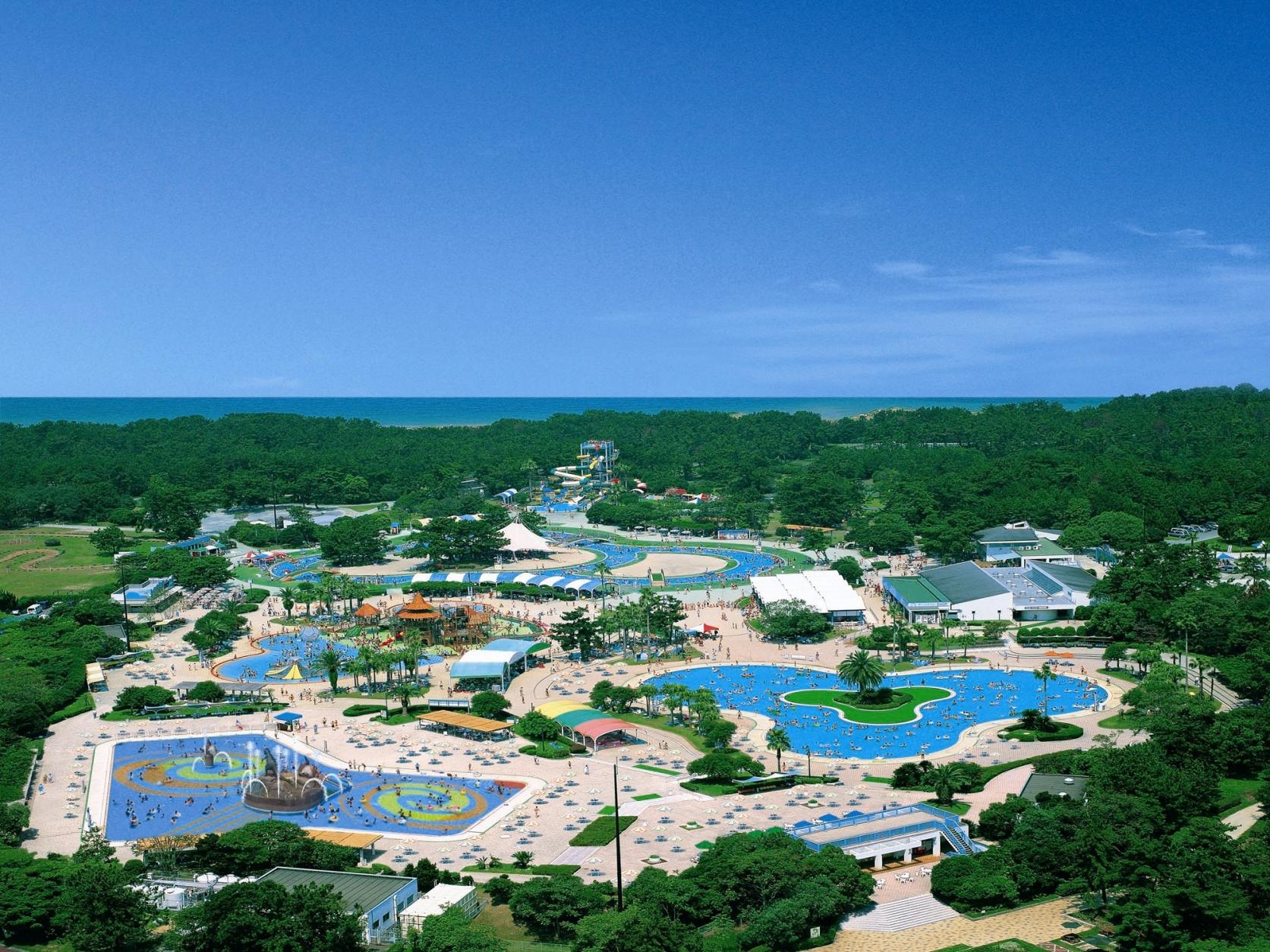 Located within Uminonakamichi Seaside Park in Fukuoka Prefecture, Sunshine Pool has six pools, including a 300-meter-long whirlpool and a pool for infants and toddlers. In addition to fun slides like Fire Dragon and Tube Dragon, the park features a dinosaur-themed area and a clover-shaped pool designed to resemble a forest lake, aptly named Forest Lake Pool.