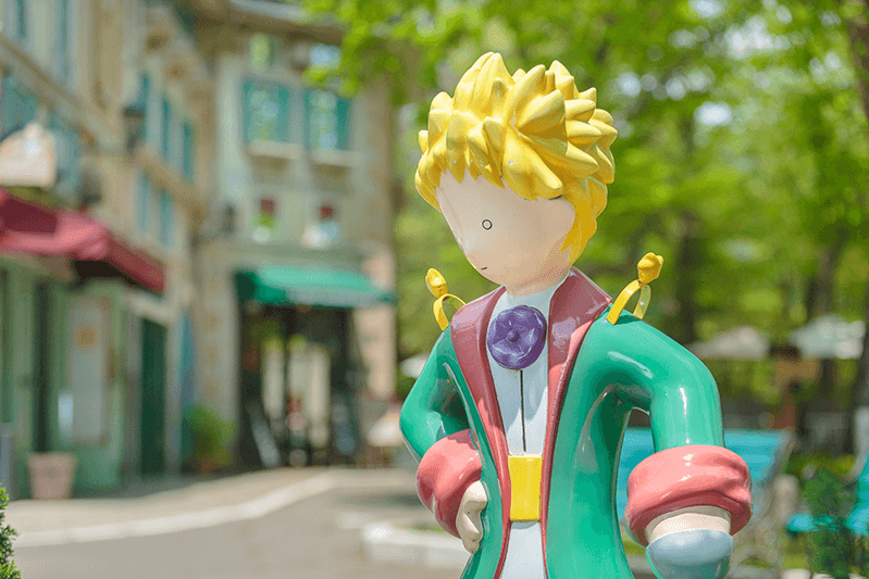 As you enter the museum grounds you will find yourself in front of a reproduction of a Provençal manor like the one where Saint-Exupéry lived during his youth. It is also home to an expansive garden, created by the European-trained designer Keiko Yoshiya. It is known for its impressive rose garden and its collection of hydrangeas, but it has been planned to feature a variety of flowers throughout the year. During the winter months, the main building is illuminated with a whimsical projection mapping that recounts stories from the novel. As you make your way to a replica street scene with cobblestones and storefronts, you can find statues of the characters who populate the author’s best-known book.