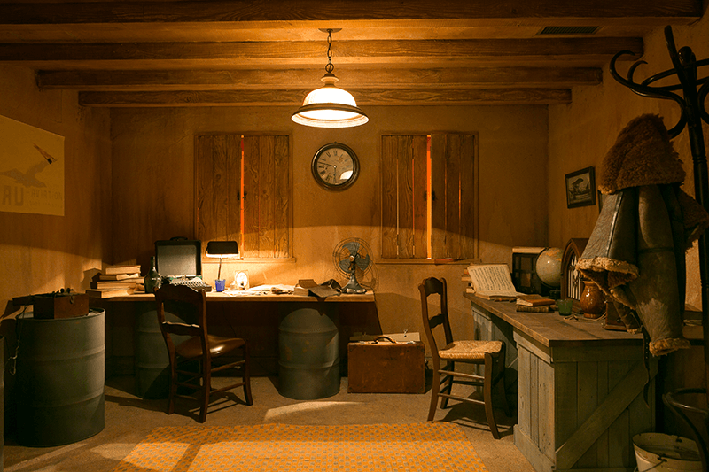 The museum’s main exhibit is dedicated to the biography of Saint-Exupéry, whose life took him from an aristocratic birth to a career as a commercial and military pilot, and from the French city of Lyon to South America and North Africa. Room after room in the building depicts the many spaces around the world where the pilot and writer lived and worked: an office in Morocco, a bar in Buenos Aires, and a hotel room in New York, where Saint-Exupéry wrote “The Little Prince.” There is even a room meant to recreate the fuselage of one of the mail planes the Frenchman flew in the 1920s and 30s.