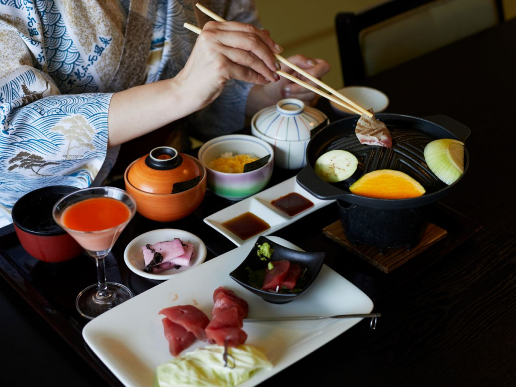 Stop by Koganezaki Furofushi Onsen to sample the maguro-don lunch set (pictured at th top of this article), which offers a generous serving of tuna sashimi and grilled tuna paired with a selection of sauces and rice bowls. Catch the sunset from the oceanside hot spring to complete the experience.