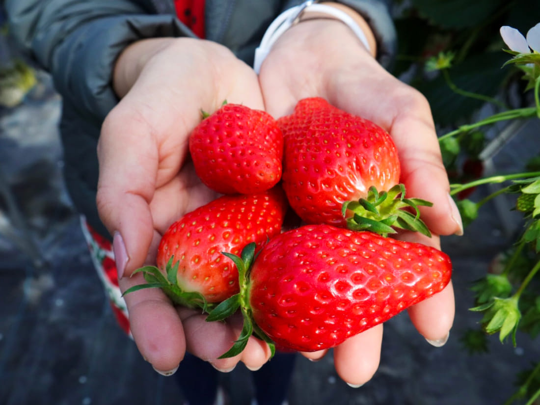 “There must be an easier way,” I thought, discreetly wiping the red juice from between my fingers. My first attempt at picking these large, juicy fruits hadn’t gone well. “You lift upwards to break the stem,” said Azusa, the owner’s daughter, effortlessly removing a perfect, red strawberry and handing it to me.