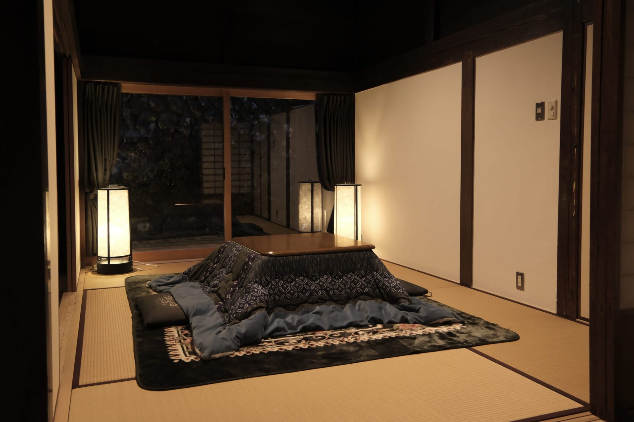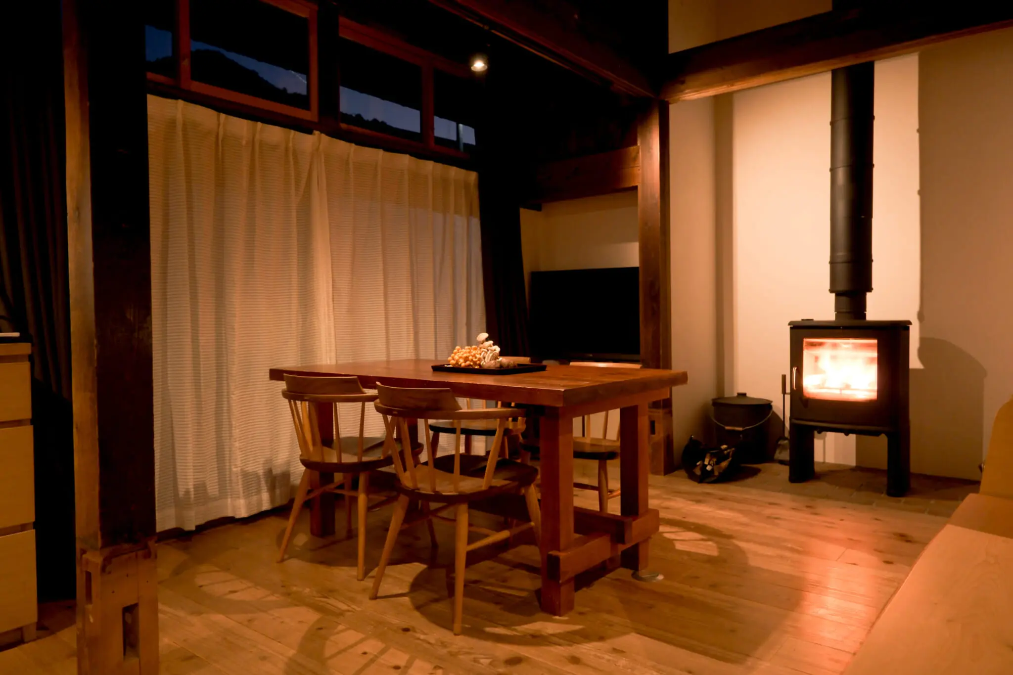 The Omori no Sato guesthouse — reached by ascending a steep, one-lane road through the forest — was formerly a schoolteacher’s home. It’s been fully renovated and refurbished, incorporating modern touches and some Western influences while maintaining the spirit and beauty of the original structure. Guests can choose between two rooms: the Western-style Gyozen room, which is smaller and sleeps up to two people, and the Japanese-style Yakemine room, which can accommodate up to four and has two spacious and elegant tatami rooms and a kitchen/dining area that recalls a ski chalet, complete with a wood-burning stove.
