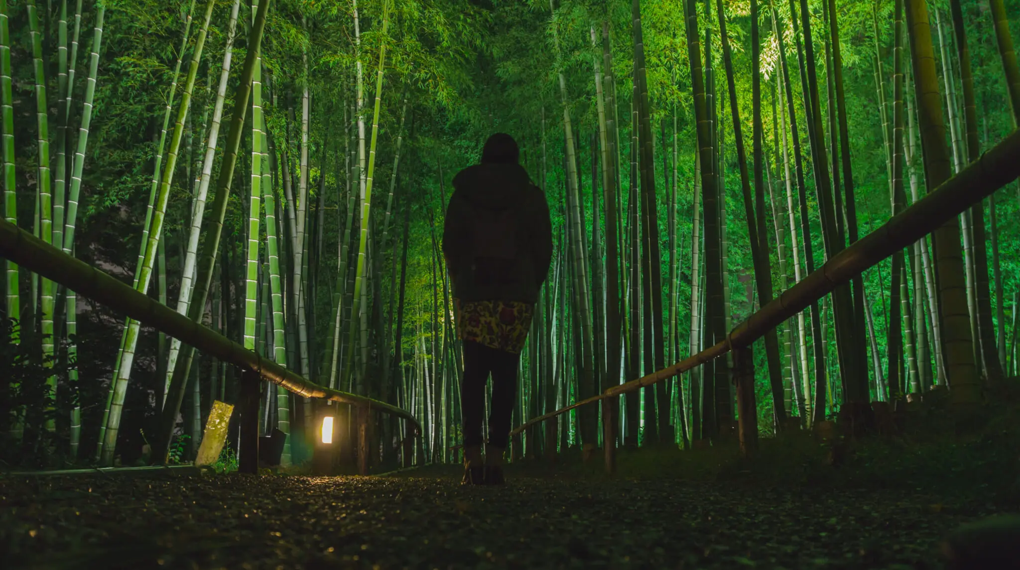 Start your day like the peaceful beginning of a horror film — with a scenic train ride to Arashiyama, a picturesque district on the outskirts of Kyoto. The journey offers stunning views of the countryside, with lush greenery and serene riversides setting the tone for an adventurous day. The area is famous for the breathtakingly lush Arashiyama bamboo forest and the historic Tenryuji Temple, a UNESCO World Heritage site.