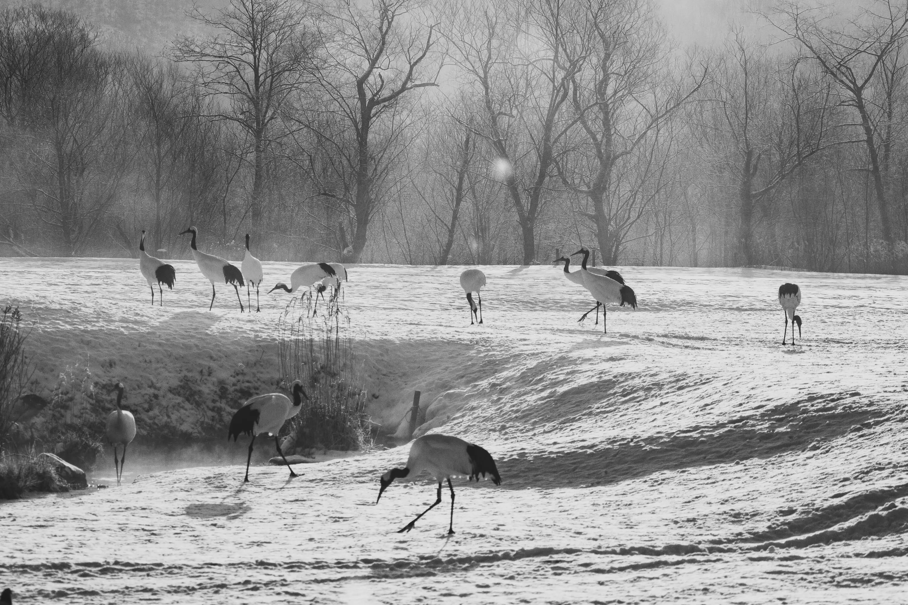 The frozen ground breaks under the weight of the loud tractor, and the roar of the engine and the crack of tires on ice disrupt the peace of the morning. However, for the majestic red-crowned cranes, also known as tancho, it is just breakfast time. At the Akan International Crane Center, visitors can witness the captivating beauty of man and nature working in harmony. Once feared to be extinct, these red-crowned cranes are now making a remarkable comeback, in part due to the artificial feeding program implemented. When food becomes scarce in the vast Kushiro Wetlands during winter, these cranes flock to the center in large numbers. Revered as gods of the marsh by the Ainu people, you can observe their elegant mating dance in the field located behind the center. With over 100 birds at its peak, this place is truly a paradise for bird watchers.
