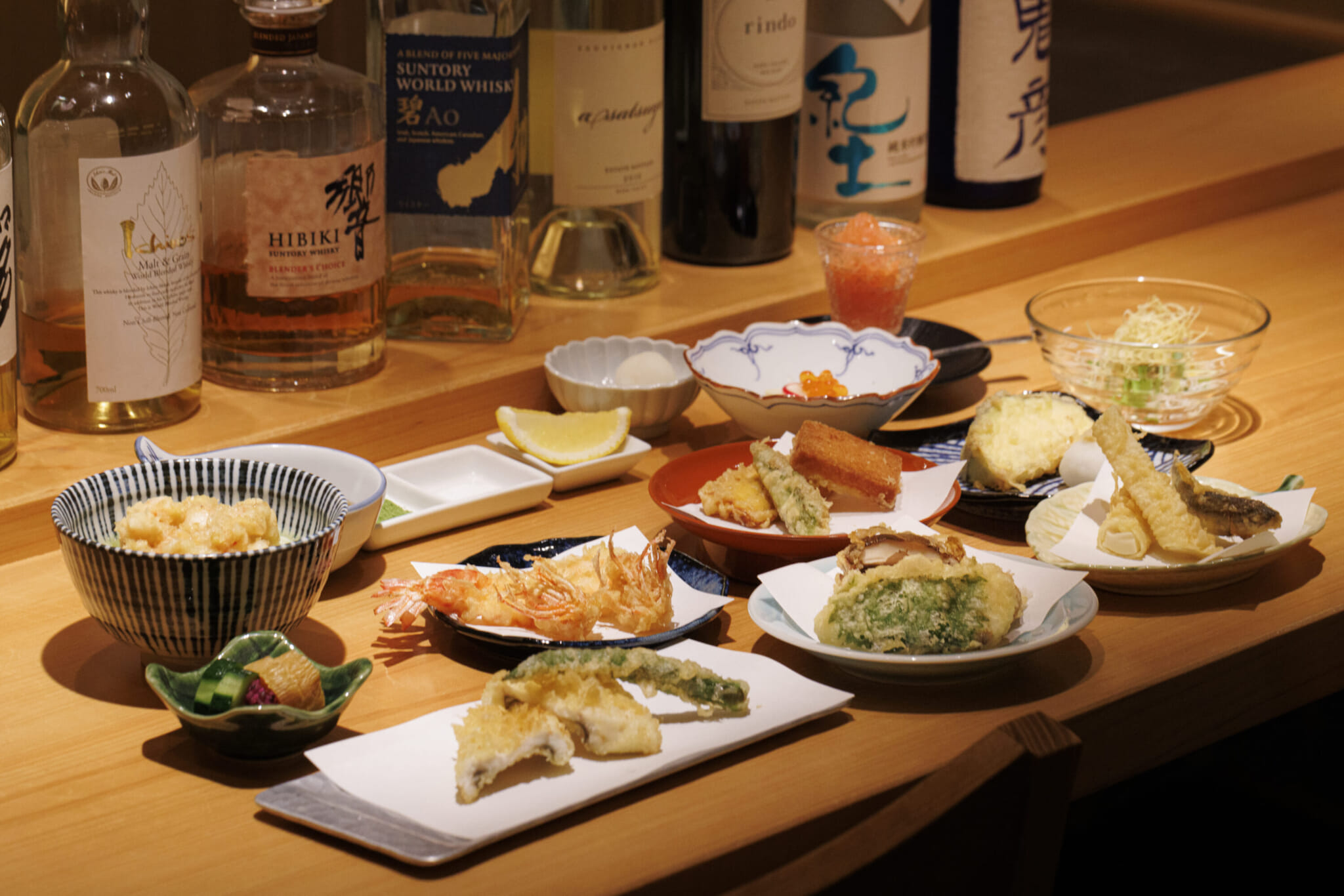 Between its second basement-level food hall and the Restaurant Floor on level 10, Daimaru Shinsaibashi has ample food and drink options, including branch locations of many famous shops. Gion Tempura Endo, for instance, is a Kyoto-style tempura shop known for its use of seasonal ingredients, the high skill level of its chefs and the exquisite lightness of its fry; the main store has operated in Kyoto’s famed Gion district for over 130 years. The Shinsaibashi location features classic, elegant Japanese interior design, with light wood details. It offers delicious tempura featuring fresh seafood and Kyoto vegetables, as well as various other dishes.