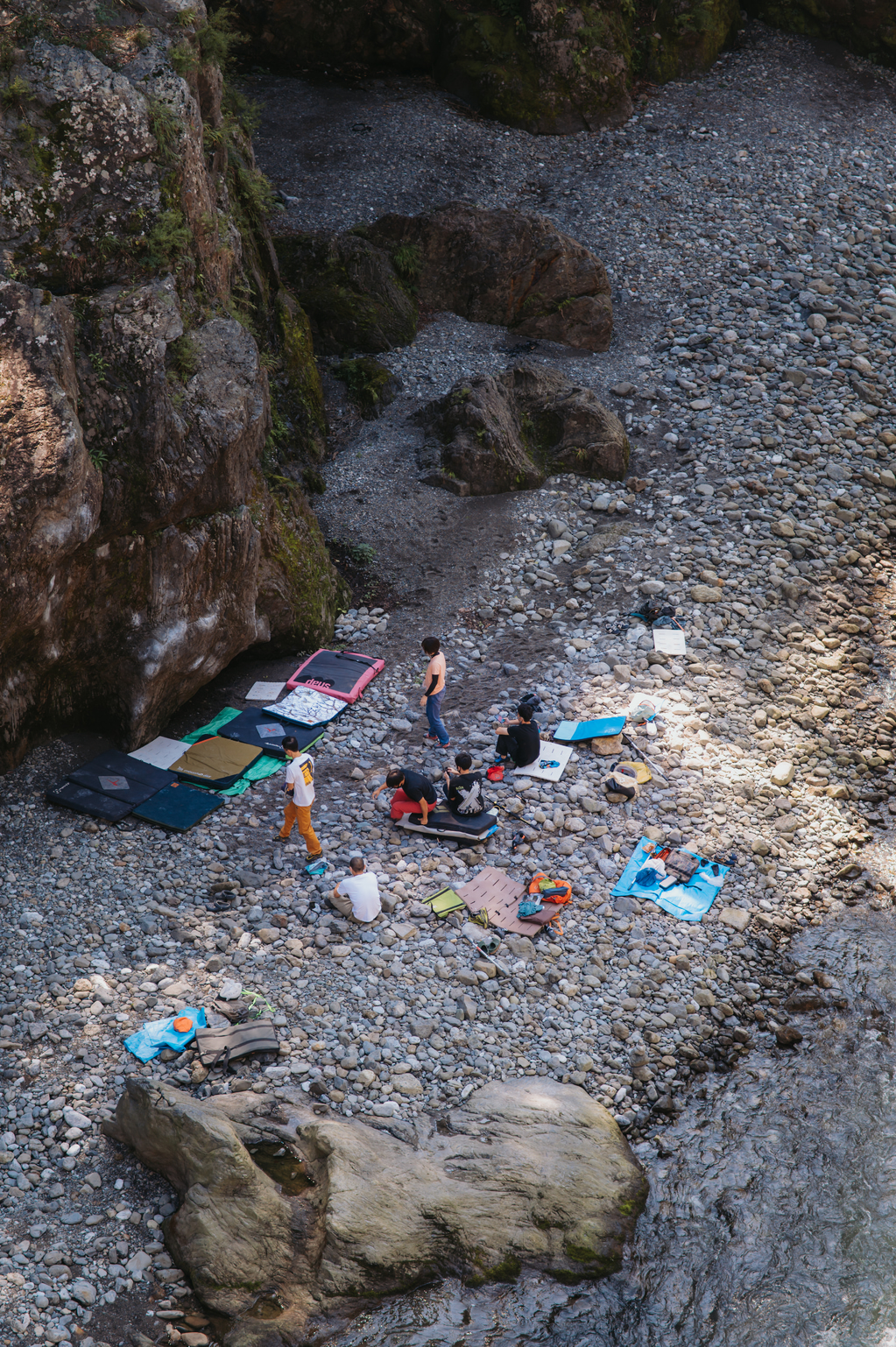 Rock formations are scattered along the riverbanks, many of them popular with seasoned boulderers. They often lay protective matting down across the rocky ground to break any untimely falls. Should you wish to participate, be careful not to reach beyond your abilities. With rocks nicknamed “Ninja” and “Dead End,” the climbing scene in Okutama is not to be taken lightly.