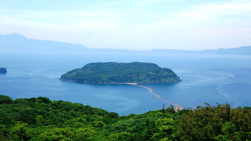 Chiringashima Island (pictured below) is located at the south end of Kagoshima Prefecture, just north of Ibusuki Onsen. Roughly 80 times a year, at low tide, a sandbar appears, allowing people to walk over to it.
