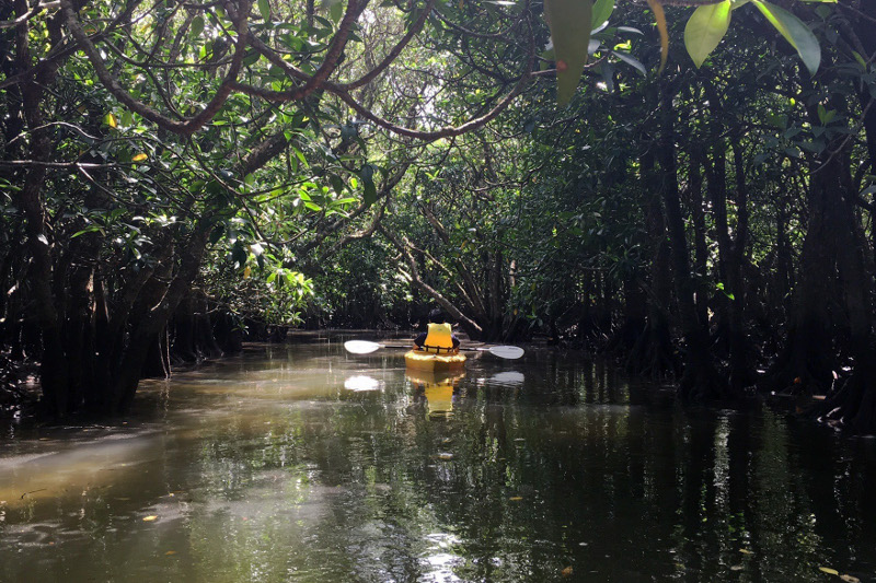 Yambaru means “region of mountain ranges and rich forests” and refers to the northern part of Okinawa’s main island. About 80% of the area is covered in subtropical laurel forests, making it an excellent habitat for a number of different species. In fact, the combined areas of Kunigami, Ogimi, and Higashi Villages are home to about half of Japan’s bird species, as well as a quarter of the nation’s frog species. Endemic species that make this region their home include the Okinawa woodpecker, the Ryukyu long-haired rat, Ishikawa’s frog, and the Yanbaru long-armed scarab beetle. The park is also the site of the largest mangrove forest on Okinawa island, covering 10 hectares of the mouth of Gesashi River.