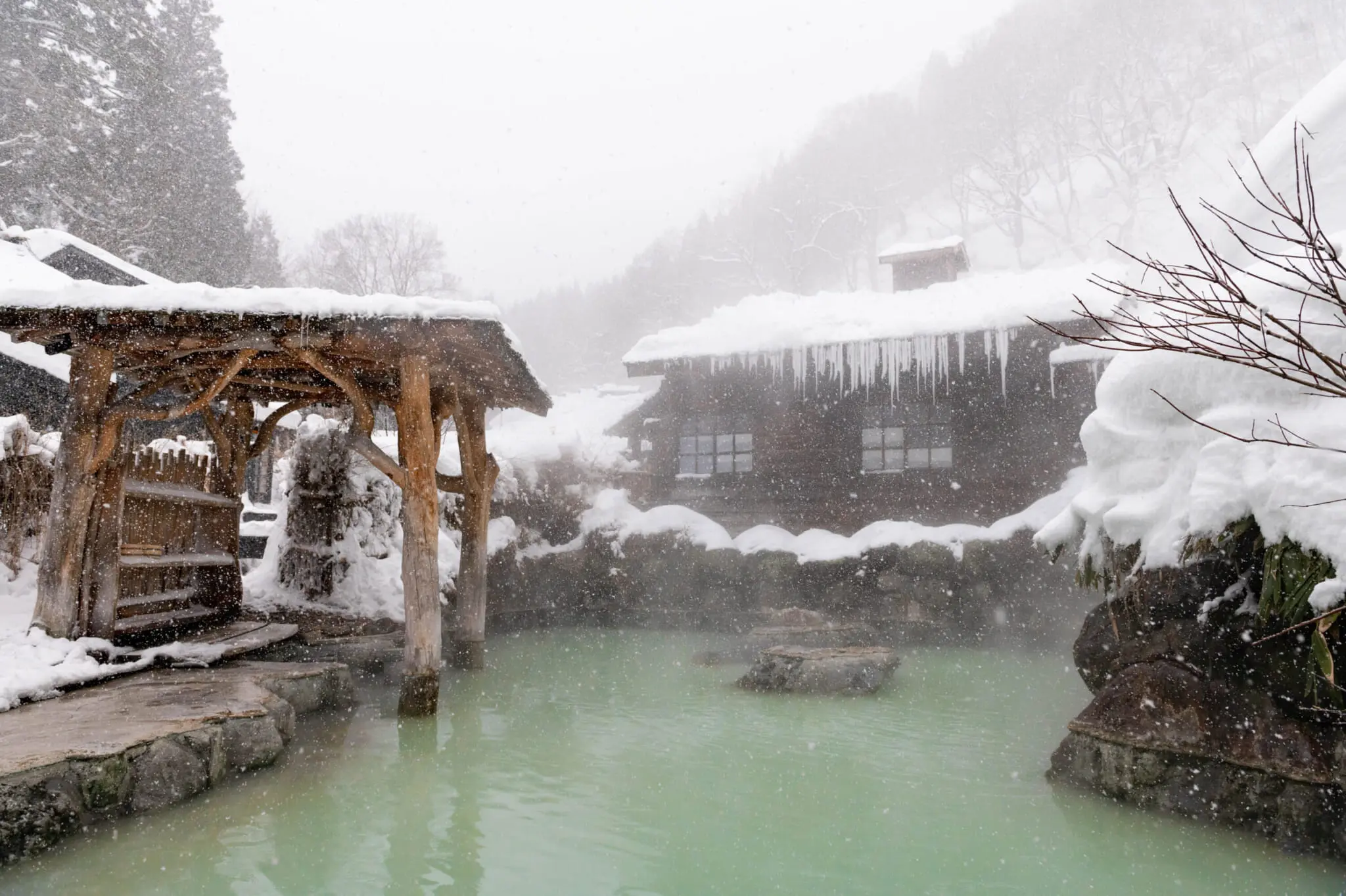 Nyuto Onsen, just a few kilometers from Lake Tazawa Ski Resort, is a scenic hot spring beloved for its healing waters and charming traditional architecture. Here you can soak in one of Japan’s few mixed-gender baths.