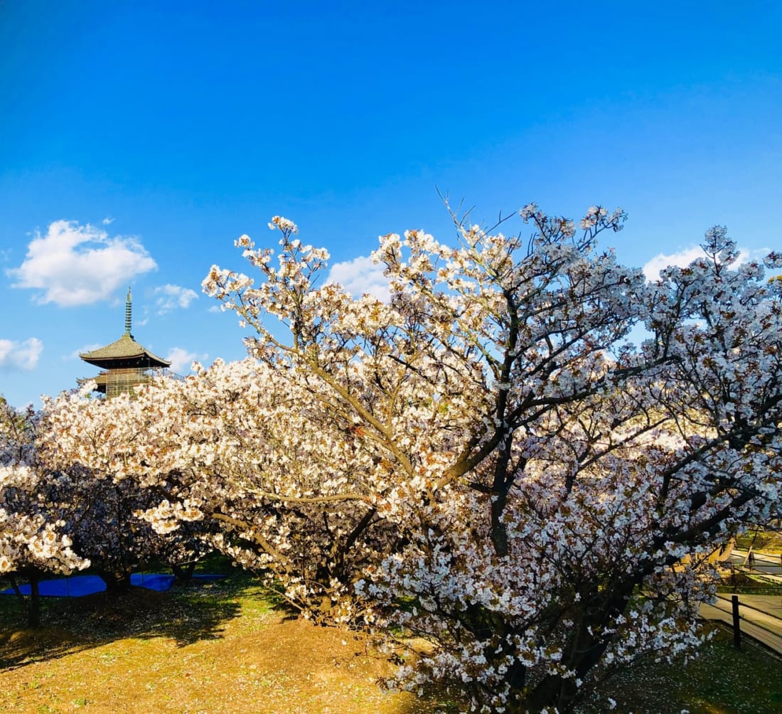 One of the iconic features of Ninnaji you cannot go without seeing is the five-storied pagoda. The illusionary vision of the monument floating on sea of pink blossoms is one otherworldly view you cannot find anywhere else.