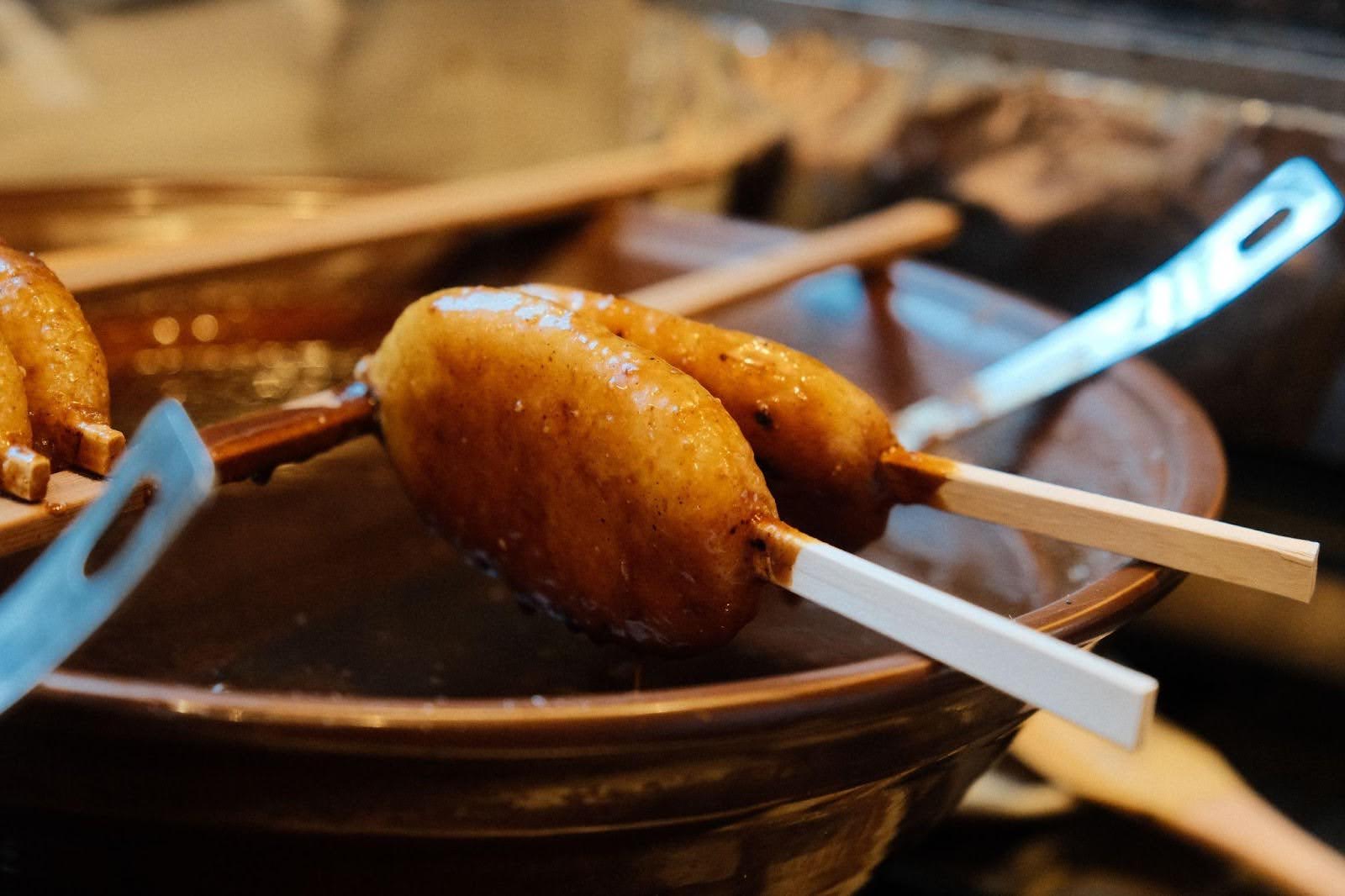 While in Himeji, make sure to try Akashiyaki. It’s one of Hyogo Prefecture’s most delicious local delicacies, originating from the seaside city of Akashi. Made with egg-rich batter and tender pieces of octopus, it’s quite similar to takoyaki in composition, appearance and shape; akashiyaki, however, is eaten with a bonito or kelp broth dip instead of being covered with sauce.