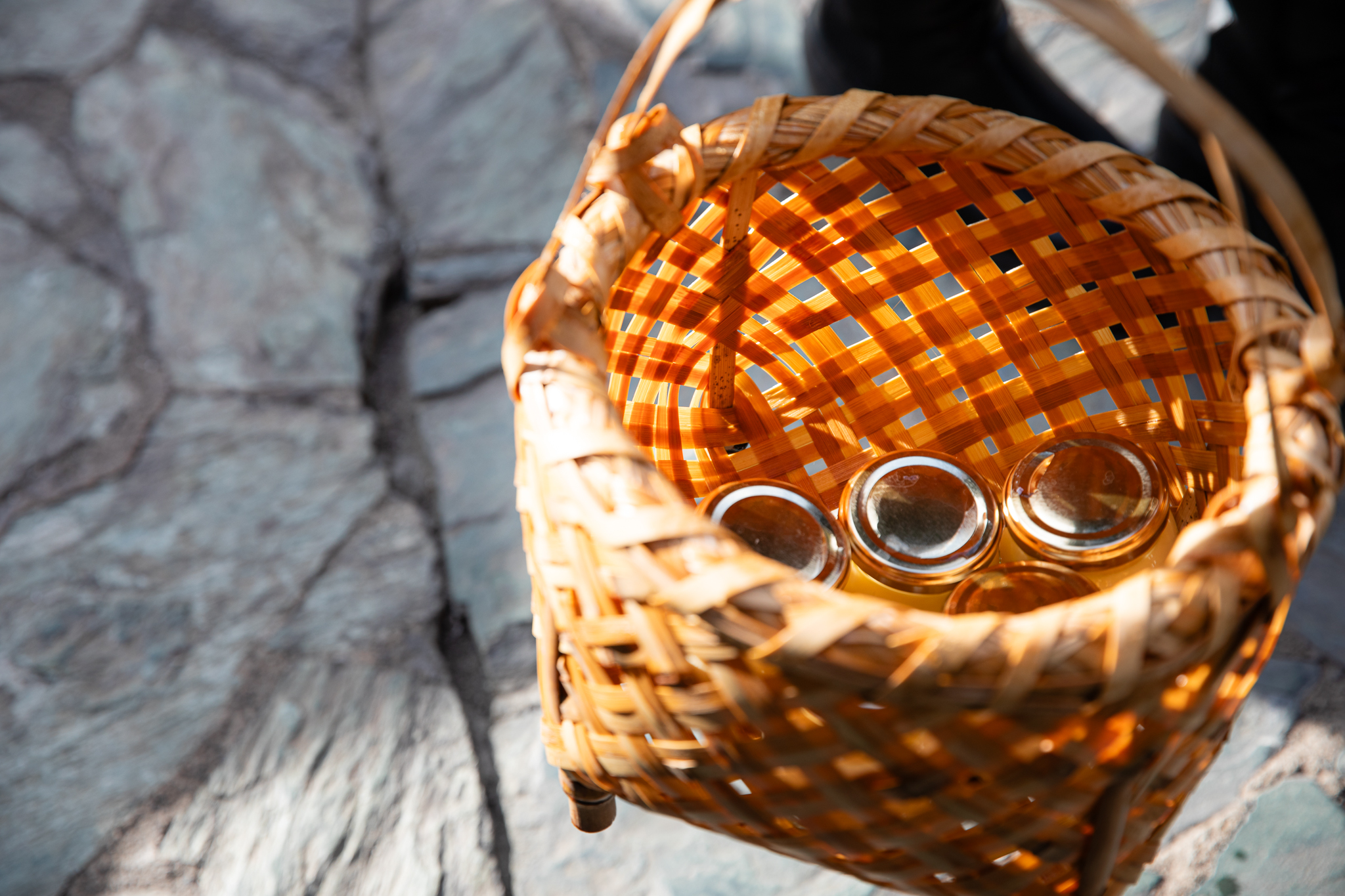 The other signature drink of Kiku-Masamune is their taruzake (cedar barrel–aged sake) which takes on just enough of the refreshing woody fragrance from its container. The brewery only uses traditional barrels made from 100-year-old or more Nara cedar wood, encircled by bamboo rings and put together without nails or glue. This impressive craft, like many traditional crafts, is on the decline, so in 2019, the brewery took in artisans as staff to make the traditional cedar barrels in-house. After the fermentation is complete, the barrels are repurposed into useful objects like planters and furniture.
