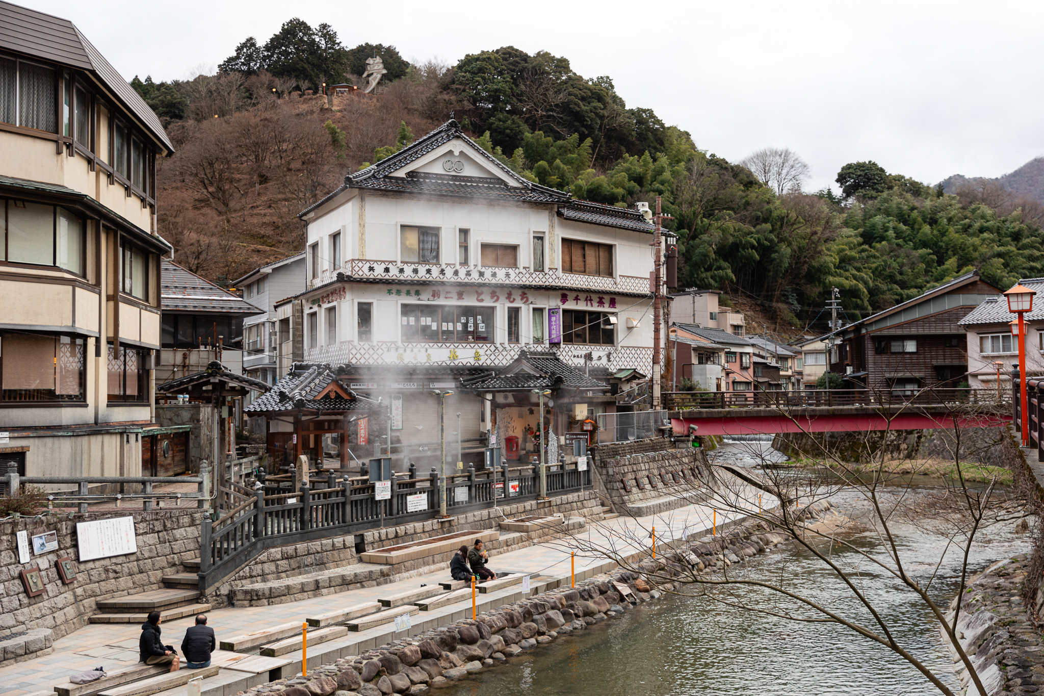 Blessed with gushing natural hot springs of almost boiling water at 98 degrees Celsius, Yumura Onsen is an example of an “everyday onsen town,” in contrast to a tourist onsen town. At Yumura Onsen, most households have hot spring water coming out of their taps. The water is clear and odorless, making it suitable for every domestic need. Visitors are welcome to dip their feet in the ashiyu foot bath on the river bank, cook eggs and puddings in the central hot springs area and of course stay the night at the local ryokan.