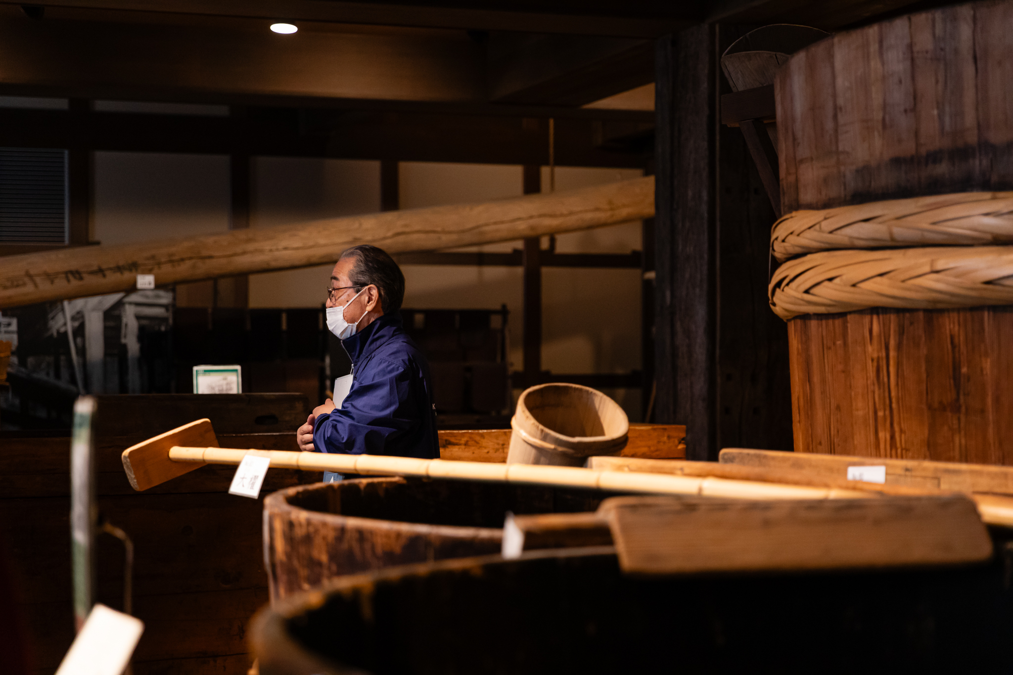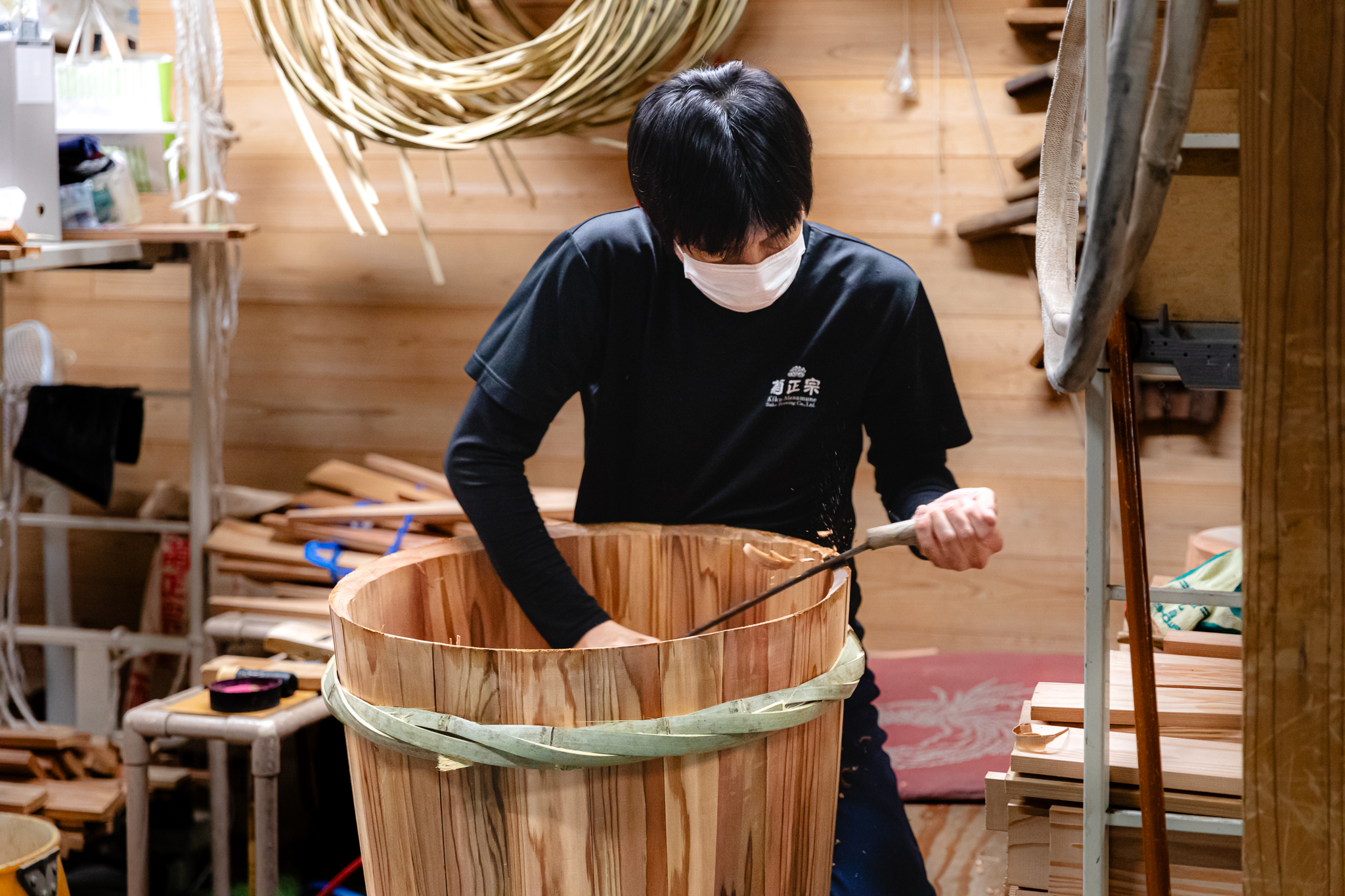 You can take a peek in the barrel workshop by making a reservation. The best way to end your visit is with a tasting set of sake or by browsing the on-site shop.