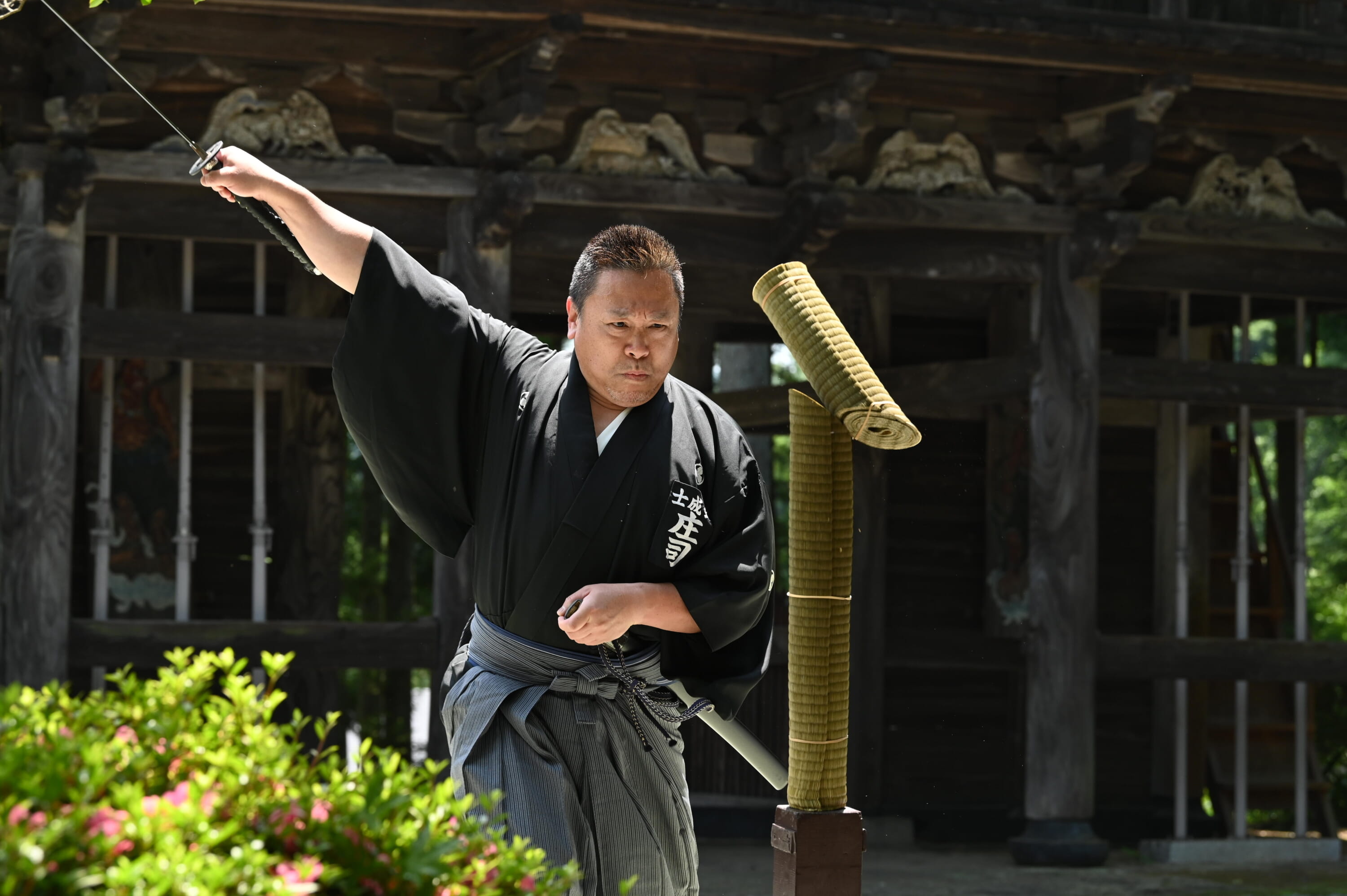 Using rare Japanese swords on loan from the dedicated iron museum in Nagano’s Sakaki town, the Sakaki Town Iron Exhibition Hall, this is a rare opportunity to witness the mastery of Japanese swordsmanship up close, as only the most highly trained practitioners achieve the expertise required for such flawless execution.