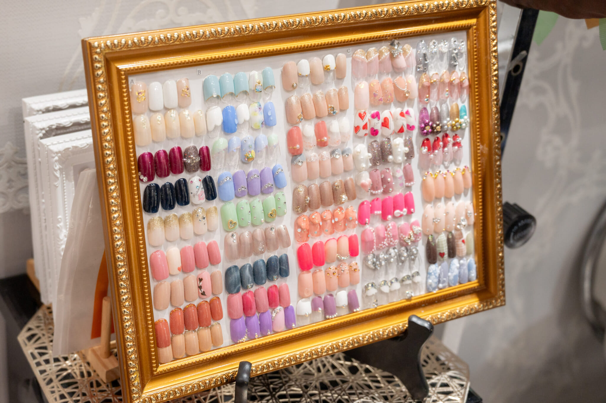 Japanese nail art is world-renowned for its artistry and innovative techniques; Japanese gels in particular are prized for their durability and intricate designs. Kanehara specializes in this craft, offering basic manicures, shellac manicures and gels. She’s adept at gel designs and can handle even the most complicated of requests. You can bring your own desired design, or choose one from the extensive collection of samples on display, including seasonal and holiday-themed ones. Along with your manicure, you’ll receive a moisturizing hand massage. Additionally, Kanehara speaks English fluently, making for seamless communication for those who may not be confident in their Japanese level.
