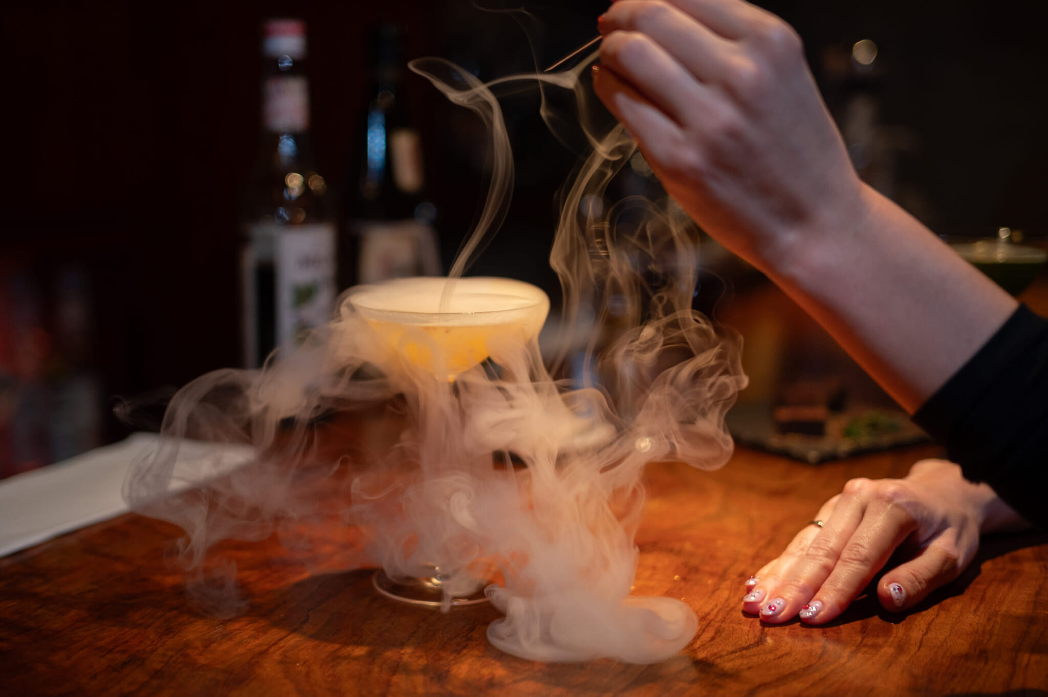 A beloved local gem, Bar L’asile is tucked away in the stylish neighborhood of Minami-Aoyama. Entering from the charming backstreets, you’ll be immediately struck by the cozy atmosphere and moody lighting befitting of the bar’s name — l’asile is French for “refuge.” The establishment offers an impressive lineup of spirits from around the world. Though it’s quite international and cosmopolitan, there’s something quintessentially Japanese about it, too, which shows in the deep attention to detail in each drink and in the flavors that are highlighted here.