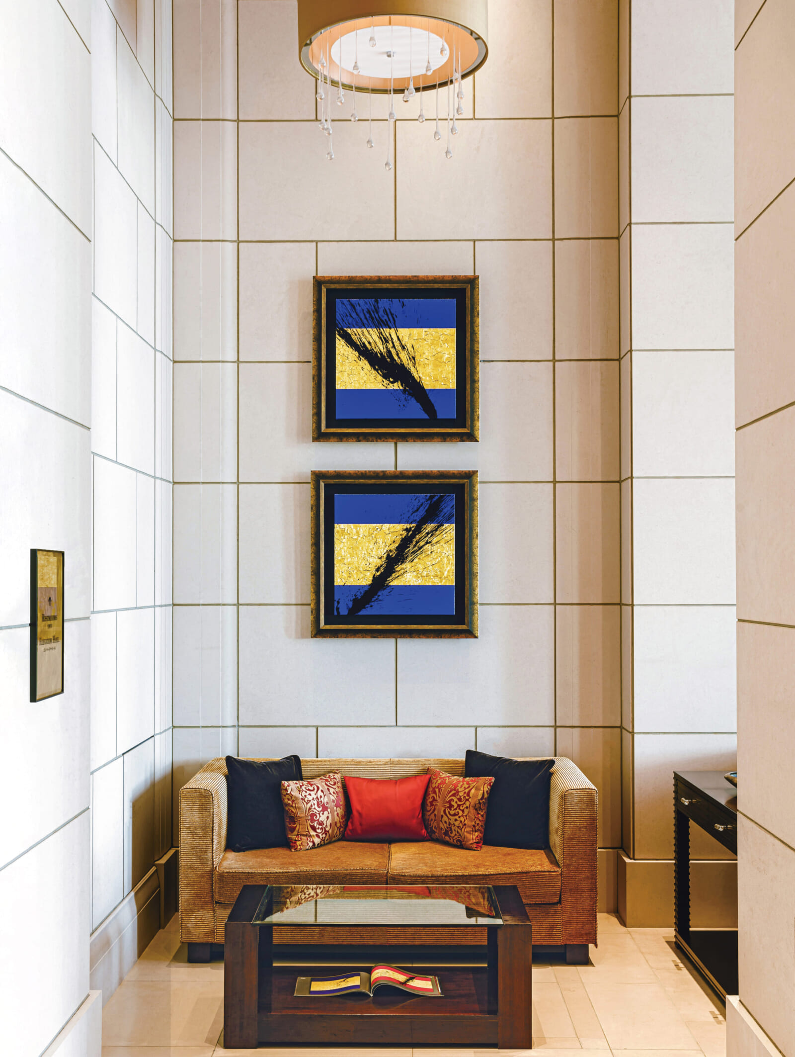 Hewett’s signature gilded canvases act as evocative bridges between antiquity and modernity in the various spaces they occupy: galleries around the world, luxury hotels, a Shinto shrine and even the National Archives in Washington, D.C.