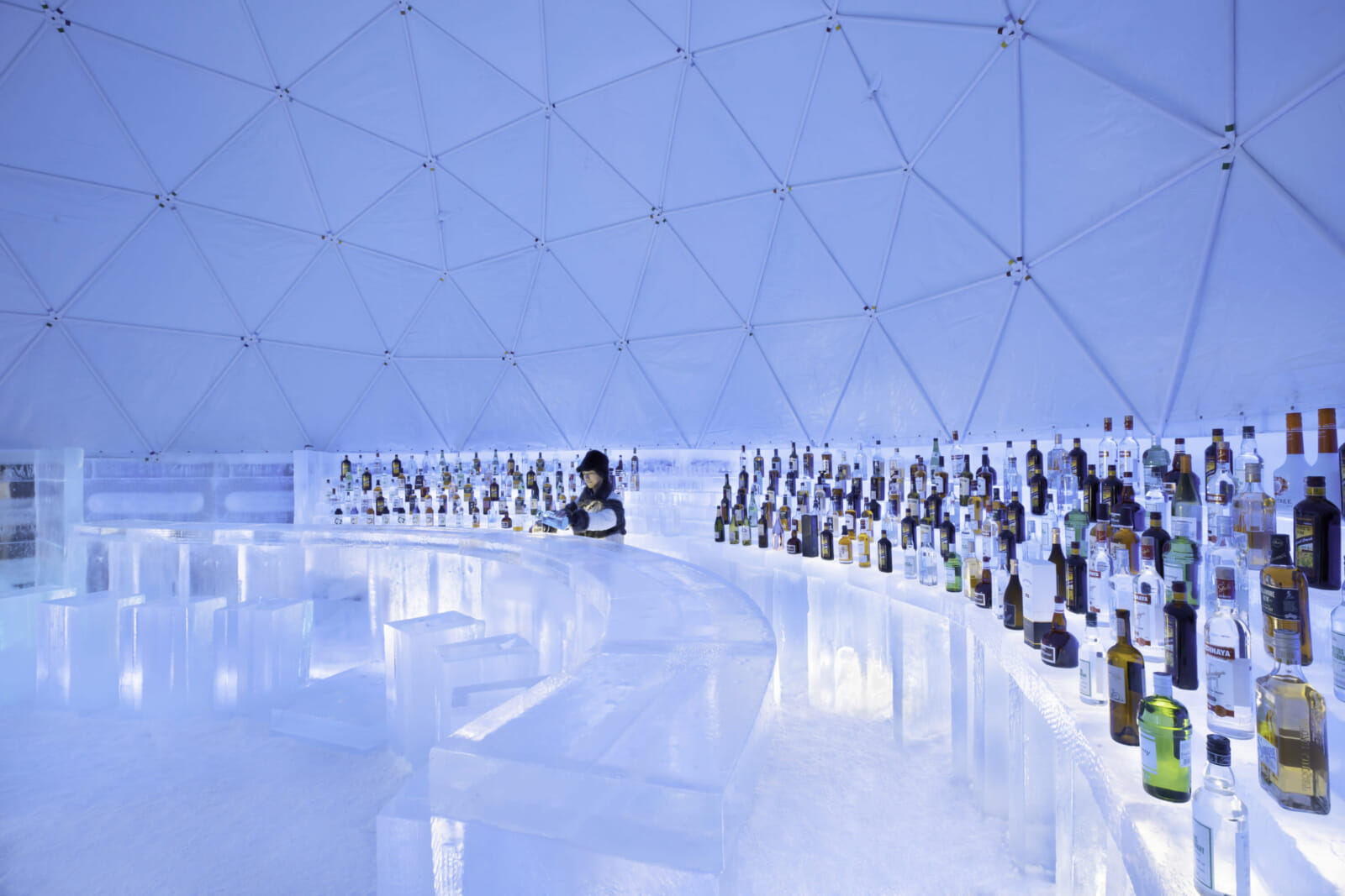 Hokkaido is not just about skiing — the region offers a wealth of off-slope activities to enhance your winter adventure. One of its coolest experiences is the Ice Village at Hoshino Resorts Tomamu, which is open from mid-December until mid-March. This icey complex comes alive at night with beautifully illuminated ice structures, several ice bars and even an ice skating rink.